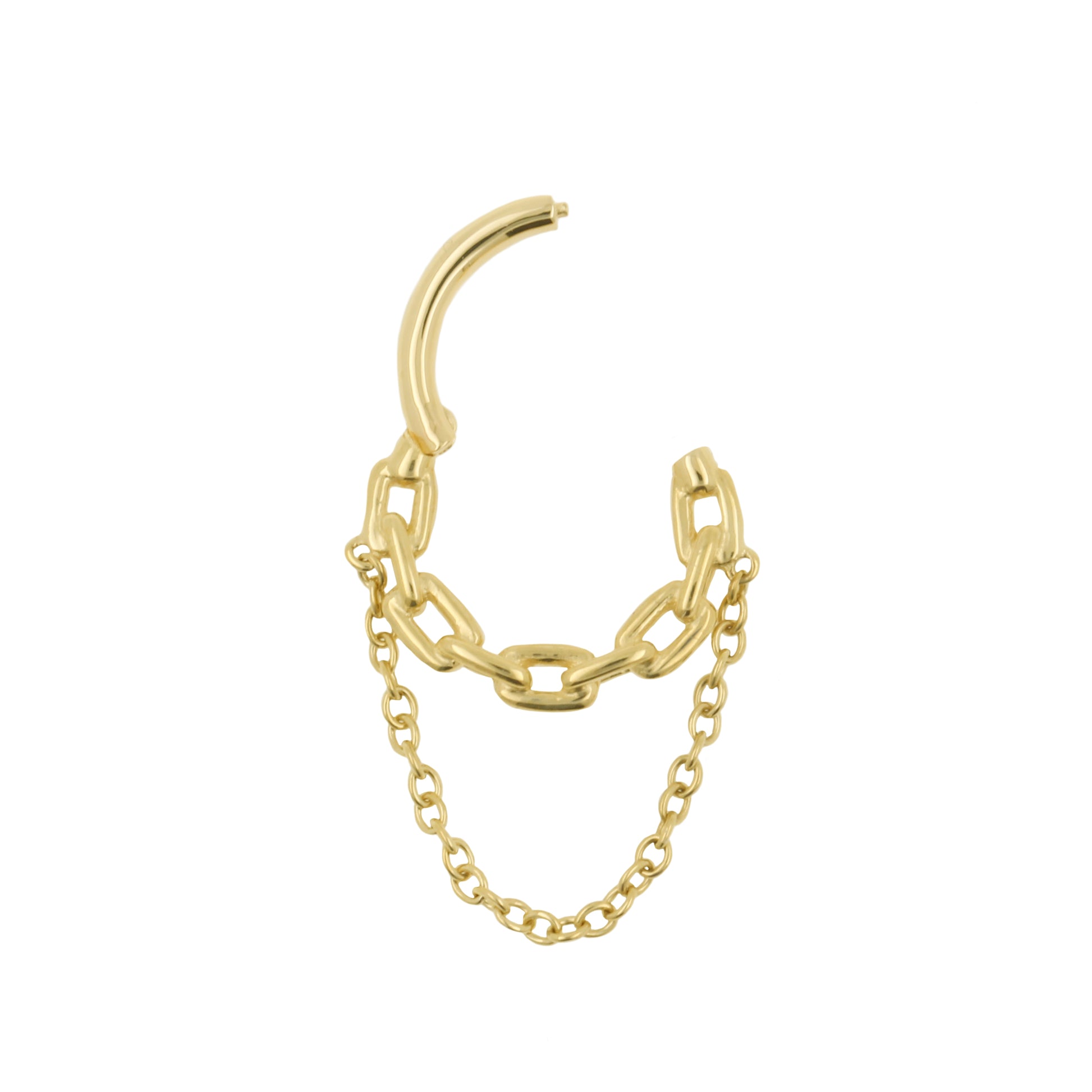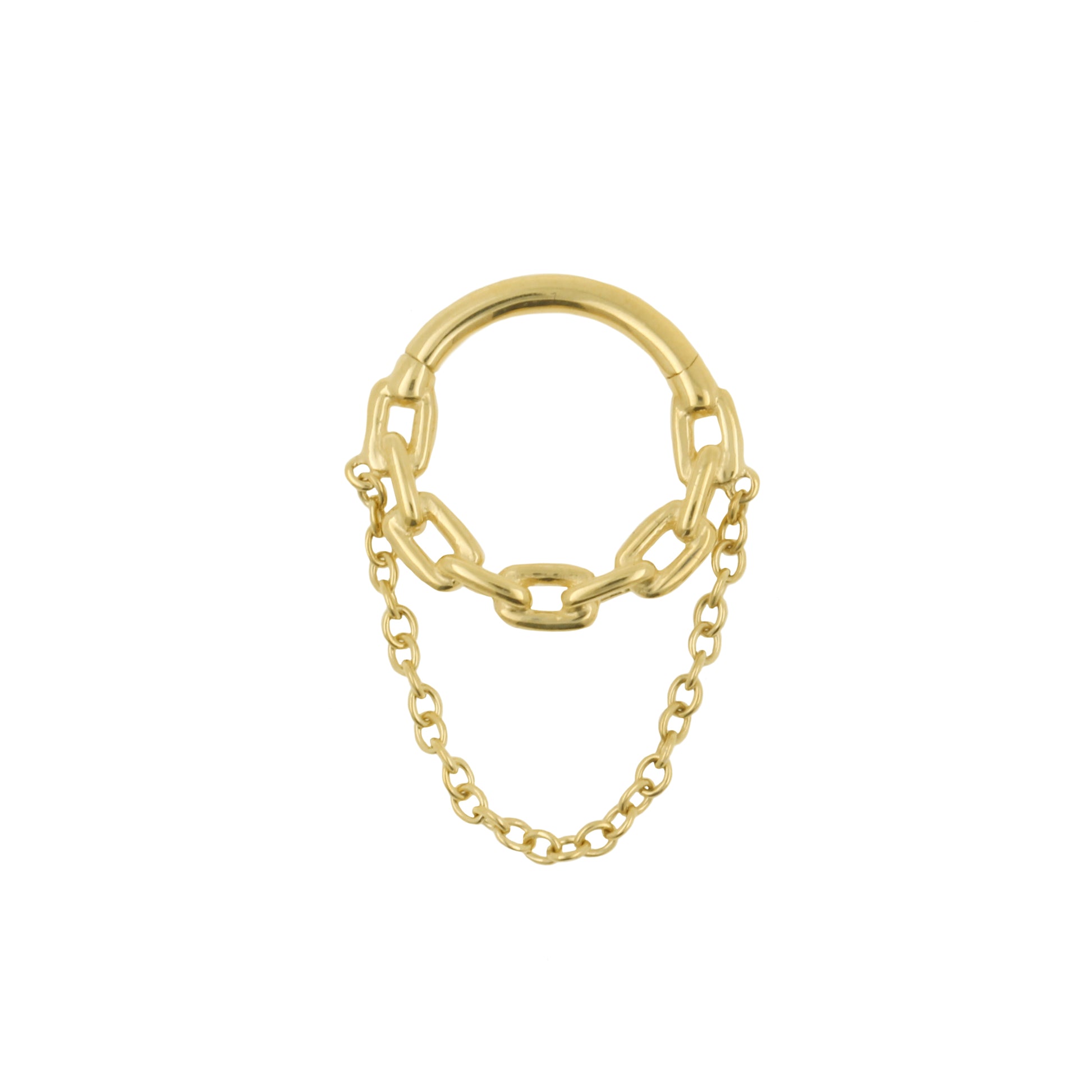 Treat yourself to comfortable, classy jewelry with a unique look! Beautiful click ring made of 14 karat gold with gorgeous design. This jewerly ring is suitable as earring, helix piercing, tragus piercing or any other piercing you can think of. Our collection Little Gem jewelry is perfect for upgrading all kinds of piercings, especially your ear party. You can use our matching threadless piercing jewelry to create the most beautiful curated ears.