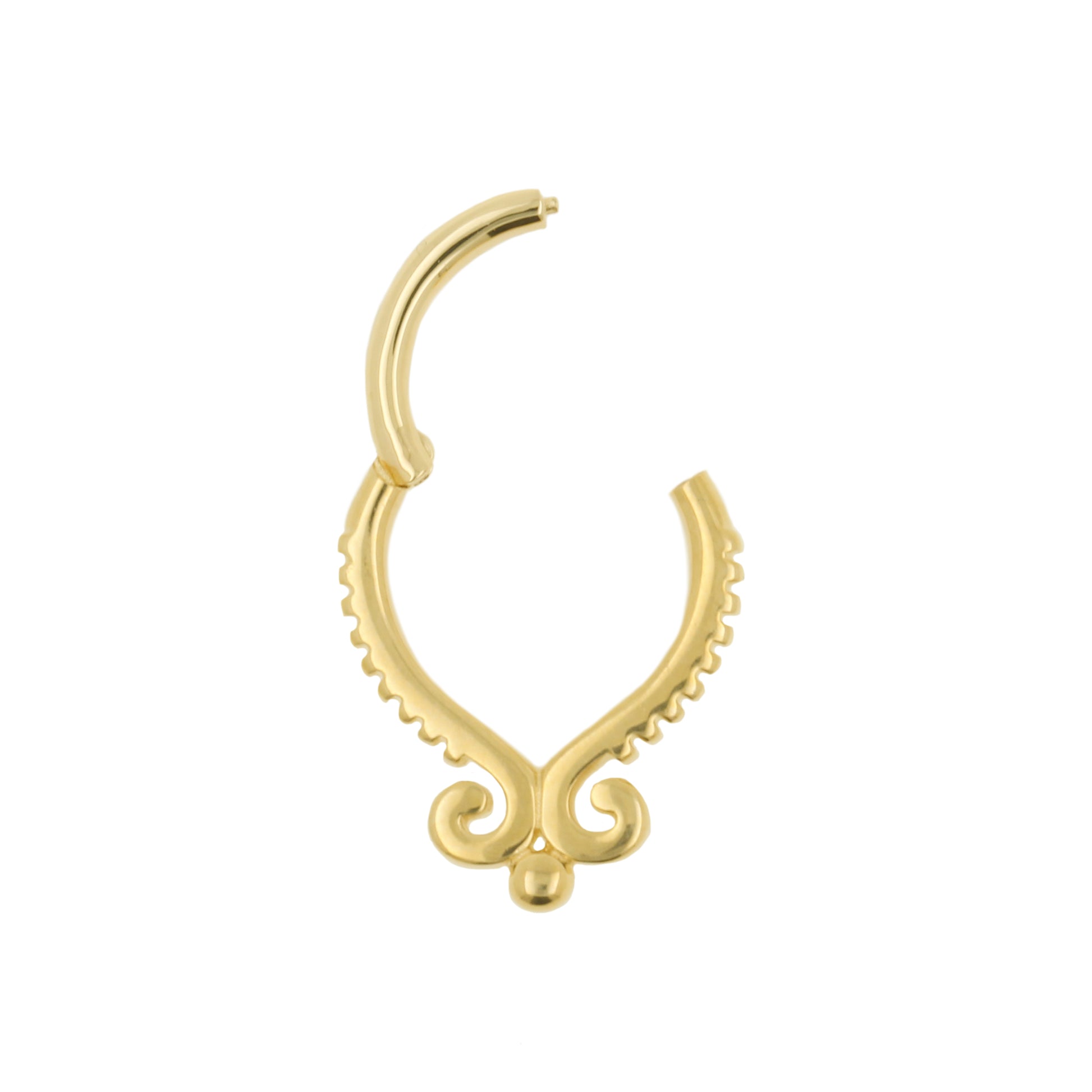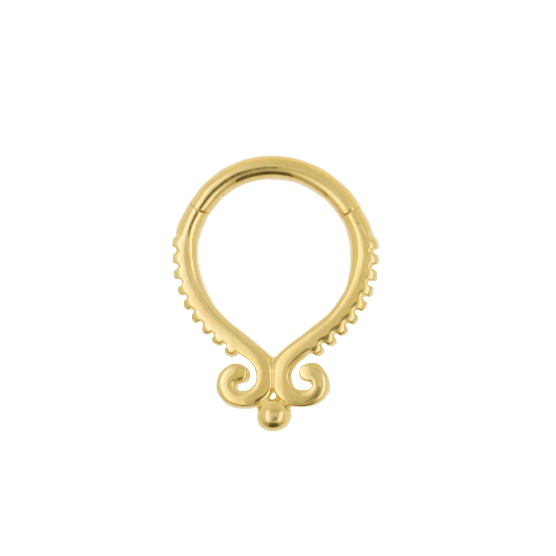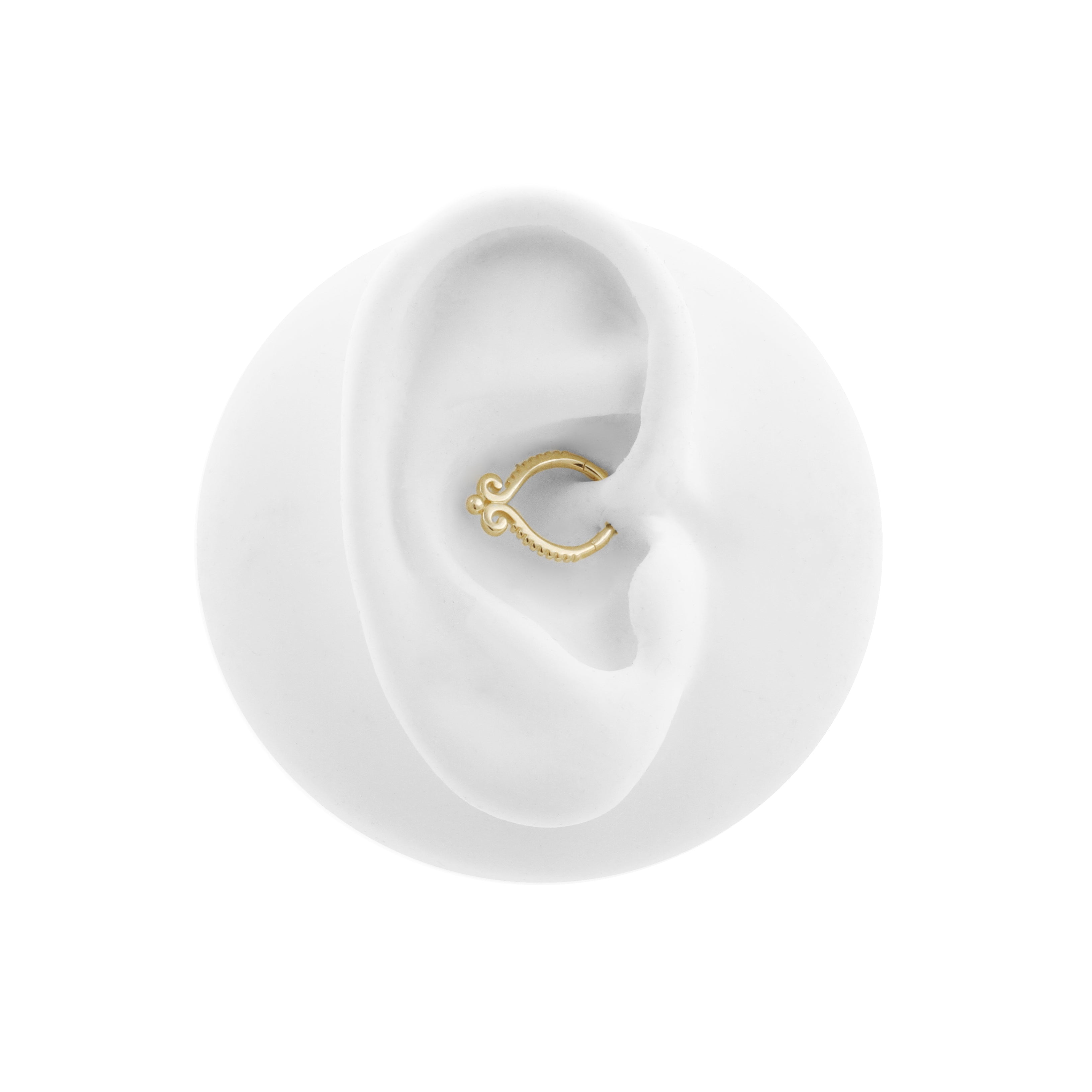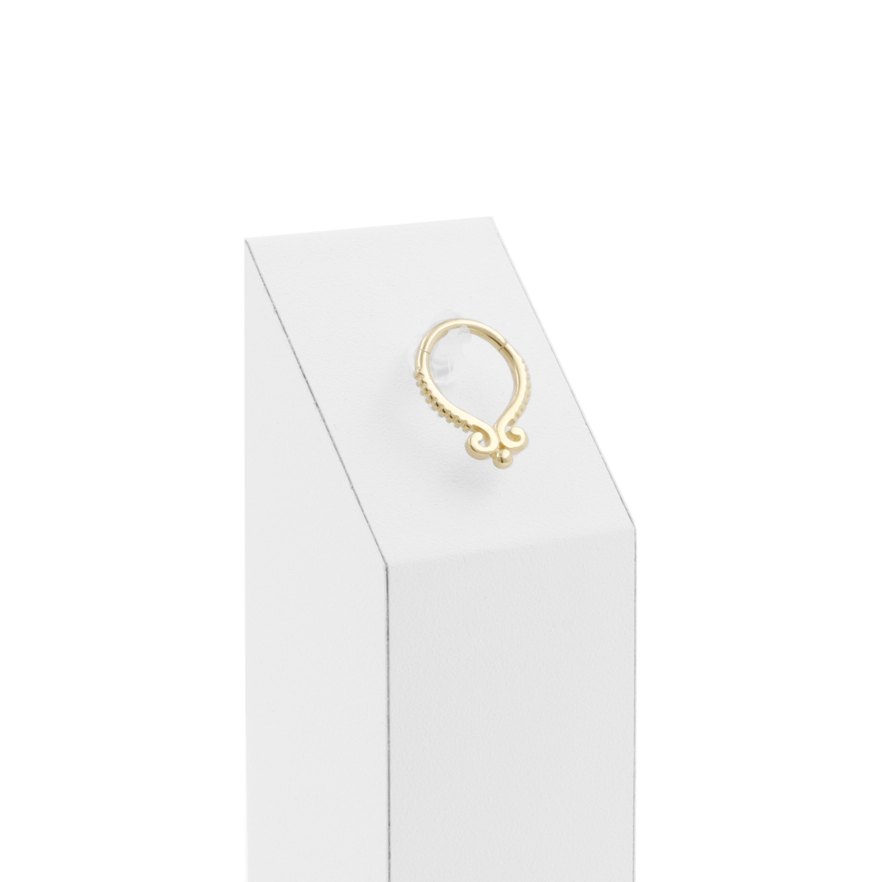 Treat yourself to comfortable, classy jewelry with a unique look! Beautiful click ring made of 14 karat gold with gorgeous design. This jewerly ring is suitable as earring, helix piercing, tragus piercing or any other piercing you can think of. Our collection Little Gem jewelry is perfect for upgrading all kinds of piercings, especially your ear party. You can use our matching threadless piercing jewelry to create the most beautiful curated ears.