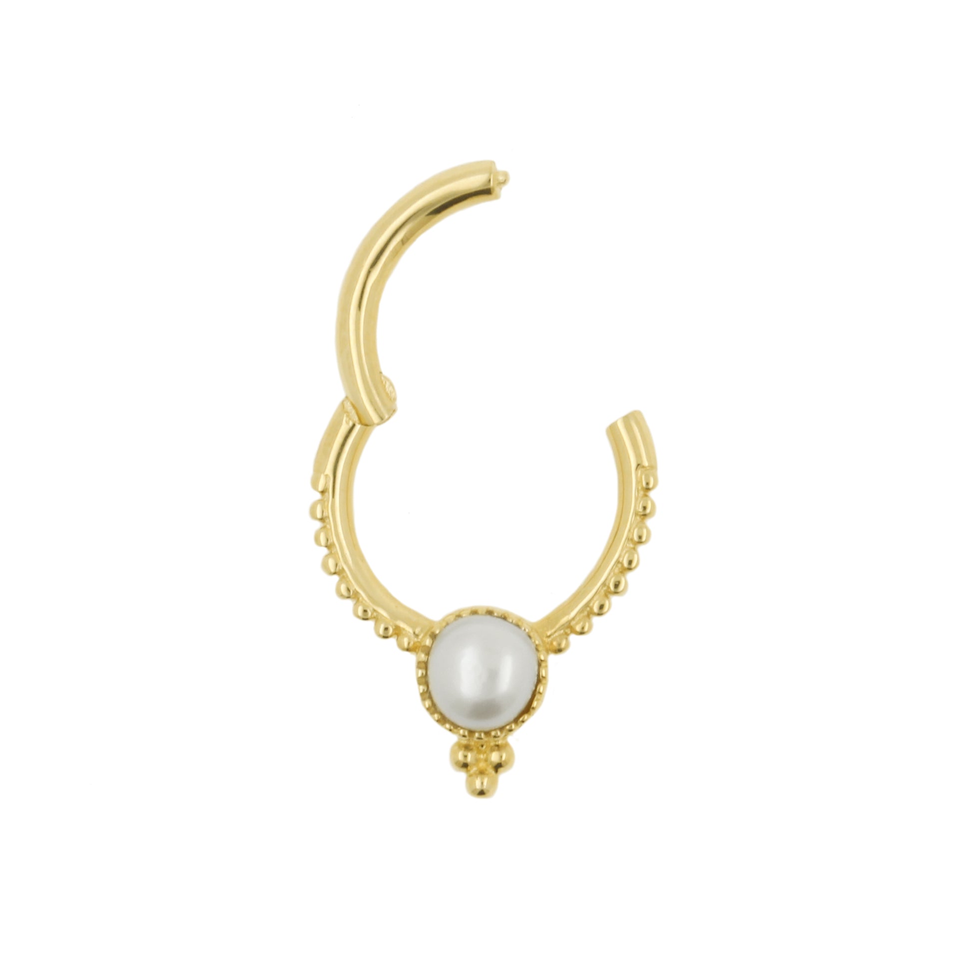 Treat yourself to comfortable, classy jewelry with a unique look! Beautiful click ring made of 14 karat gold with gorgeous design. This jewerly ring is suitable as earring, helix piercing, tragus piercing or any other piercing you can think of. Our collection Little Gem jewelry is perfect for upgrading all kinds of piercings, especially your ear party. You can use our matching threadless piercing jewelry to create the most beautiful curated ears.