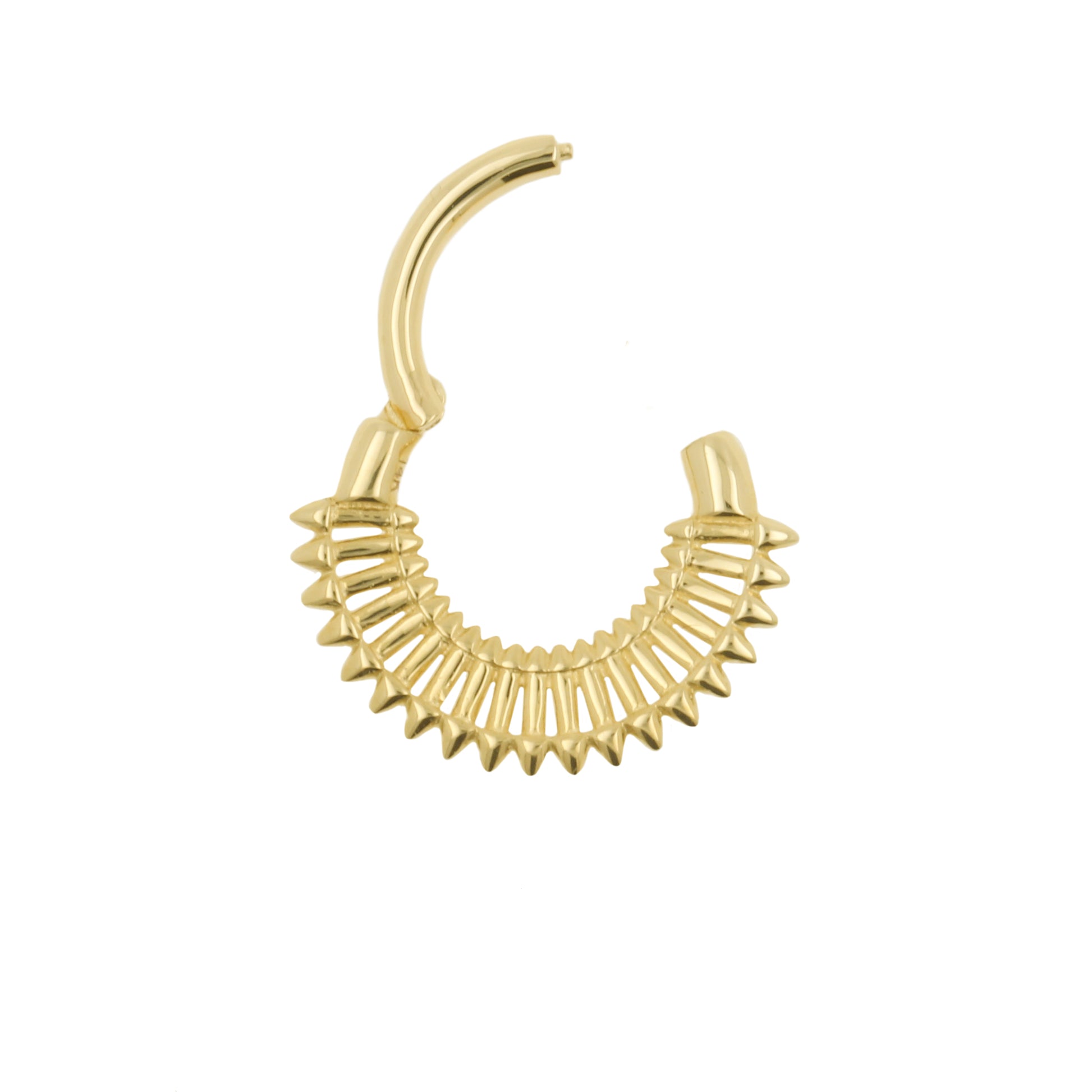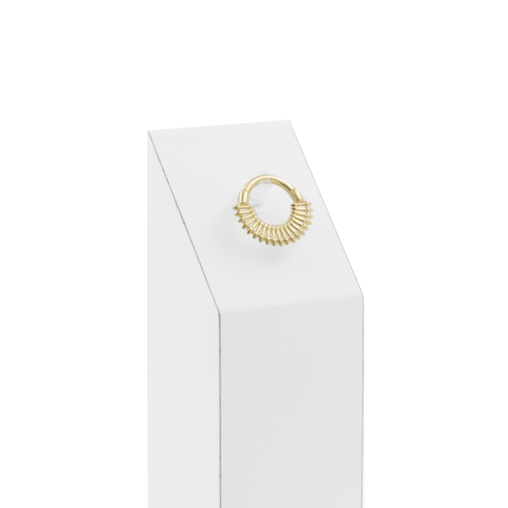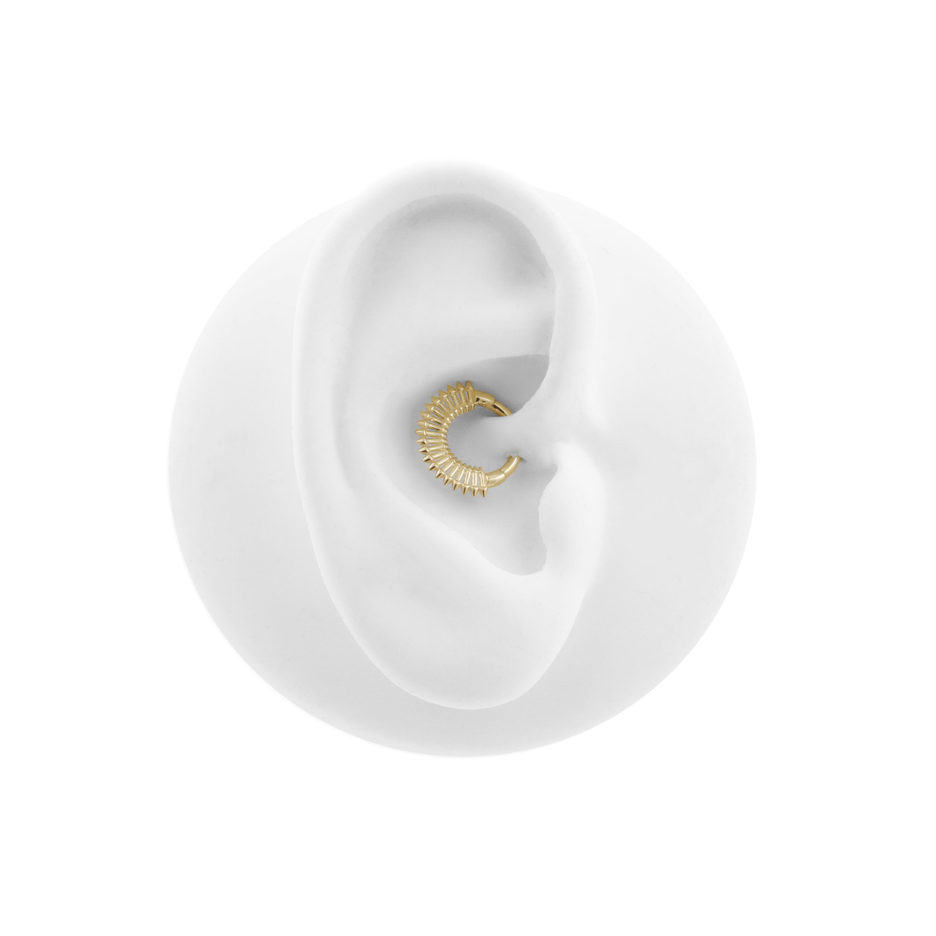 Treat yourself to comfortable, classy jewelry with a unique look! Beautiful click ring made of 14 karat gold with gorgeous design. This jewerly ring is suitable as earring, helix piercing, tragus piercing or any other piercing you can think of. Our collection Little Gem jewelry is perfect for upgrading all kinds of piercings, especially your ear party. You can use our matching threadless piercing jewelry to create the most beautiful curated ears.
