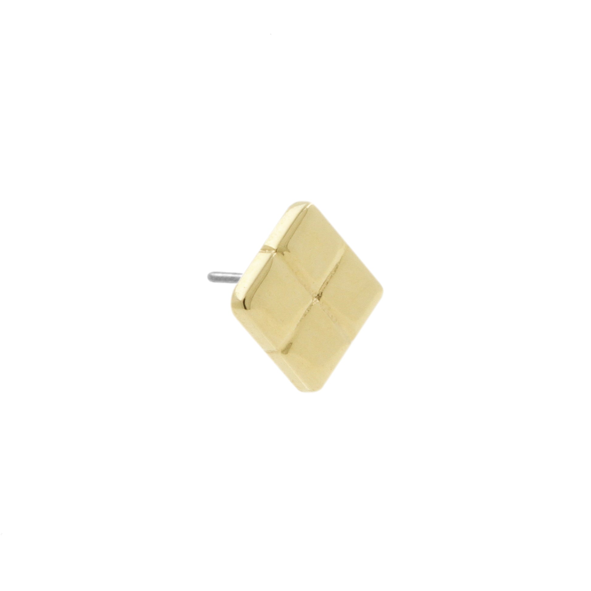 14 Karat Gold Cube instantly adds a stylish touch to your piercing. This Threadless Top is made of 14 Karat Gold. The threadless system allows you to easily combine this top with all our bars, which we call Threadless Base, for a perfect fit and ultimate comfort.