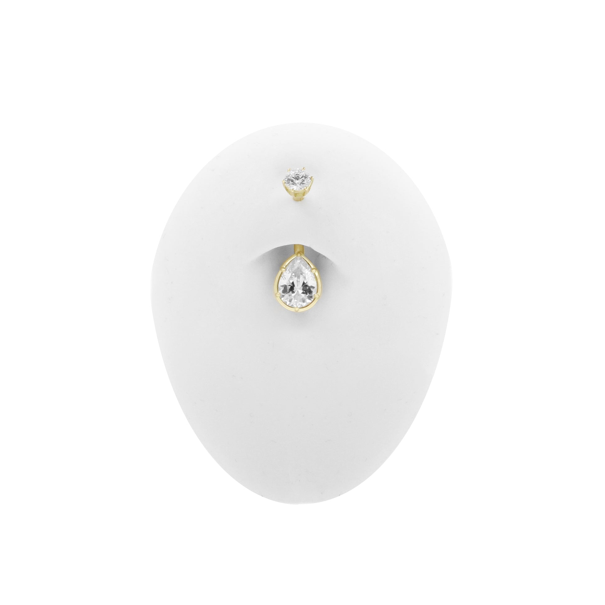 18 Karat Gold Belly Bar with Pear Shaped Premium Zirconia