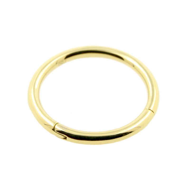 Looking for real jewelry? Here it is. This is the perfect piercing ring if you love our click rings and precious metals. The ring is made of 18 Karat Gold. The segment of this click ring is hinged and can easily be opened and closed. The closing mechanism is very easy to use and allows a smooth insertion into your piercings.