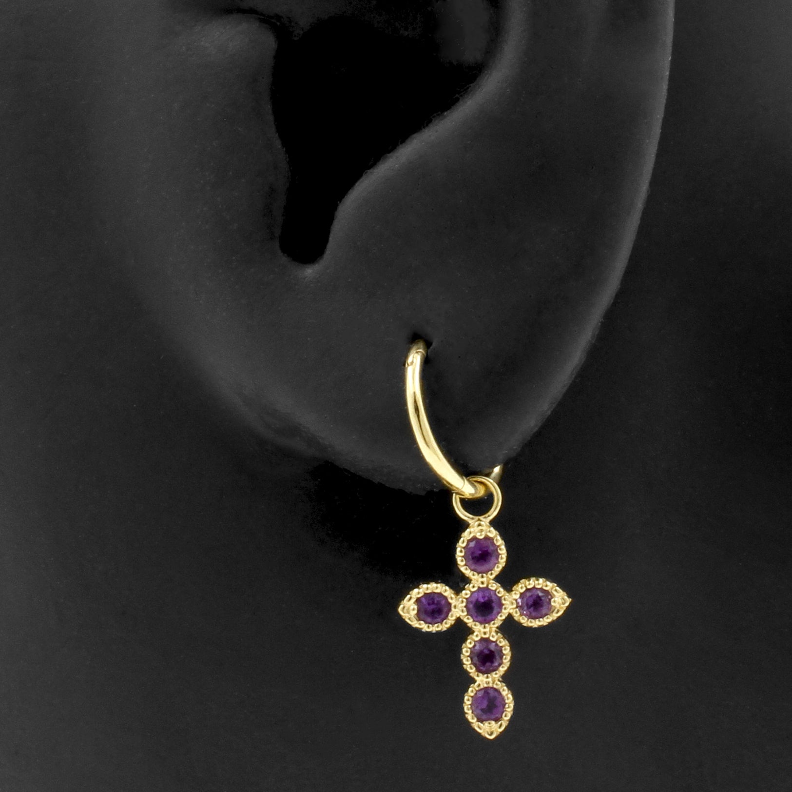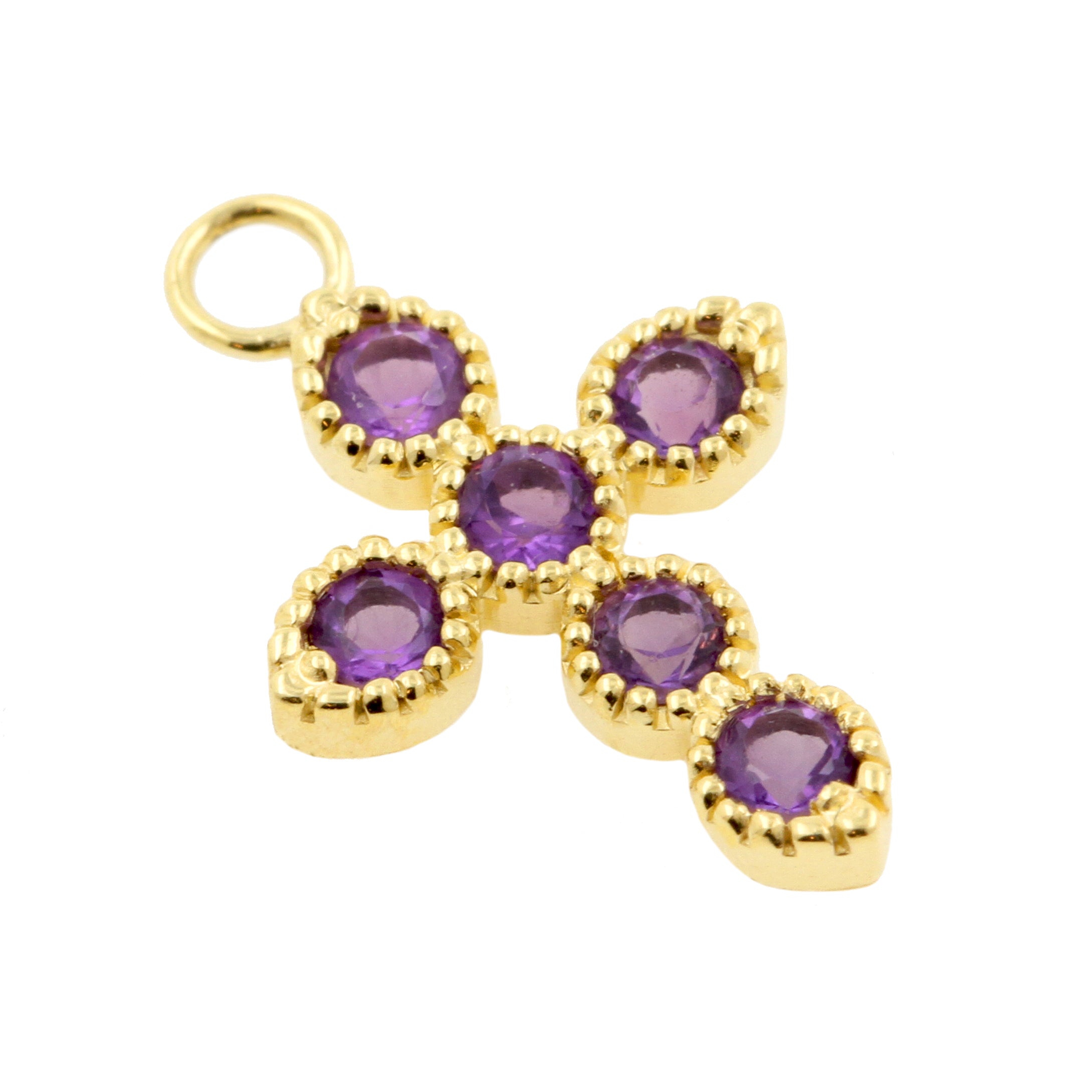 18 Karat Gold Click Ring Charm - Cross Amethyst
