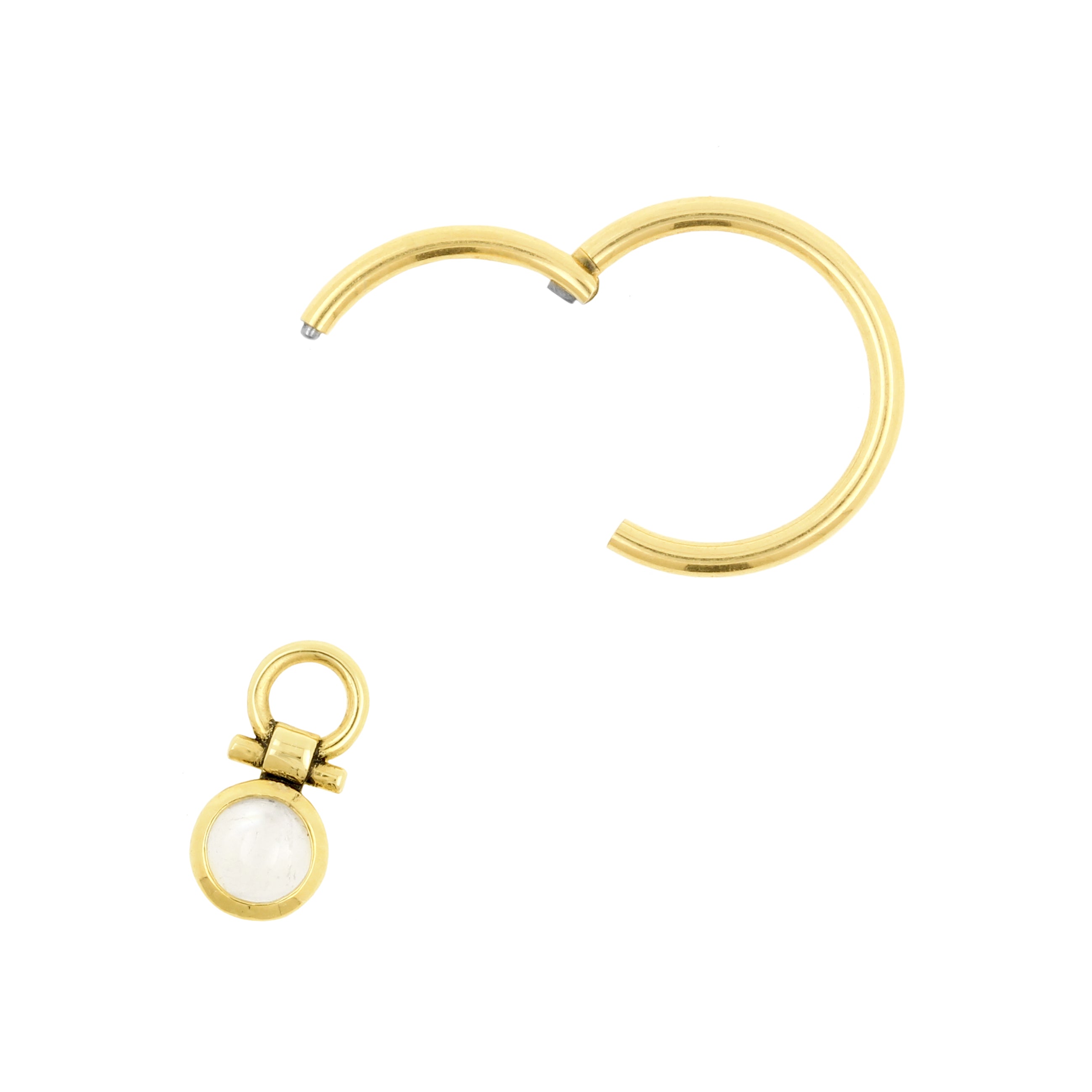 A refined detail that adds a subtle accent to your click ring. This charm is crafted from solid 18 karat gold and finished with a moonstone in rainbow.