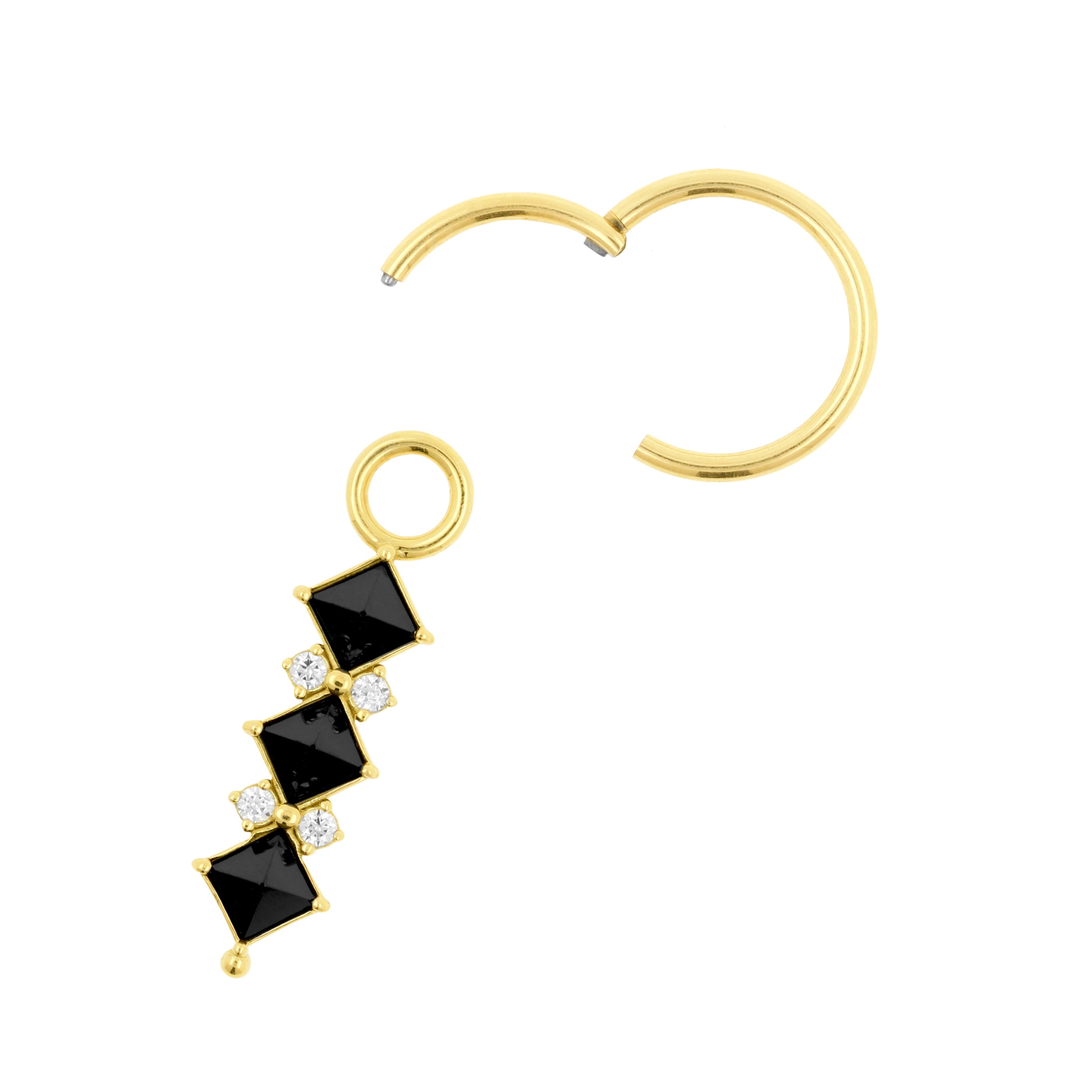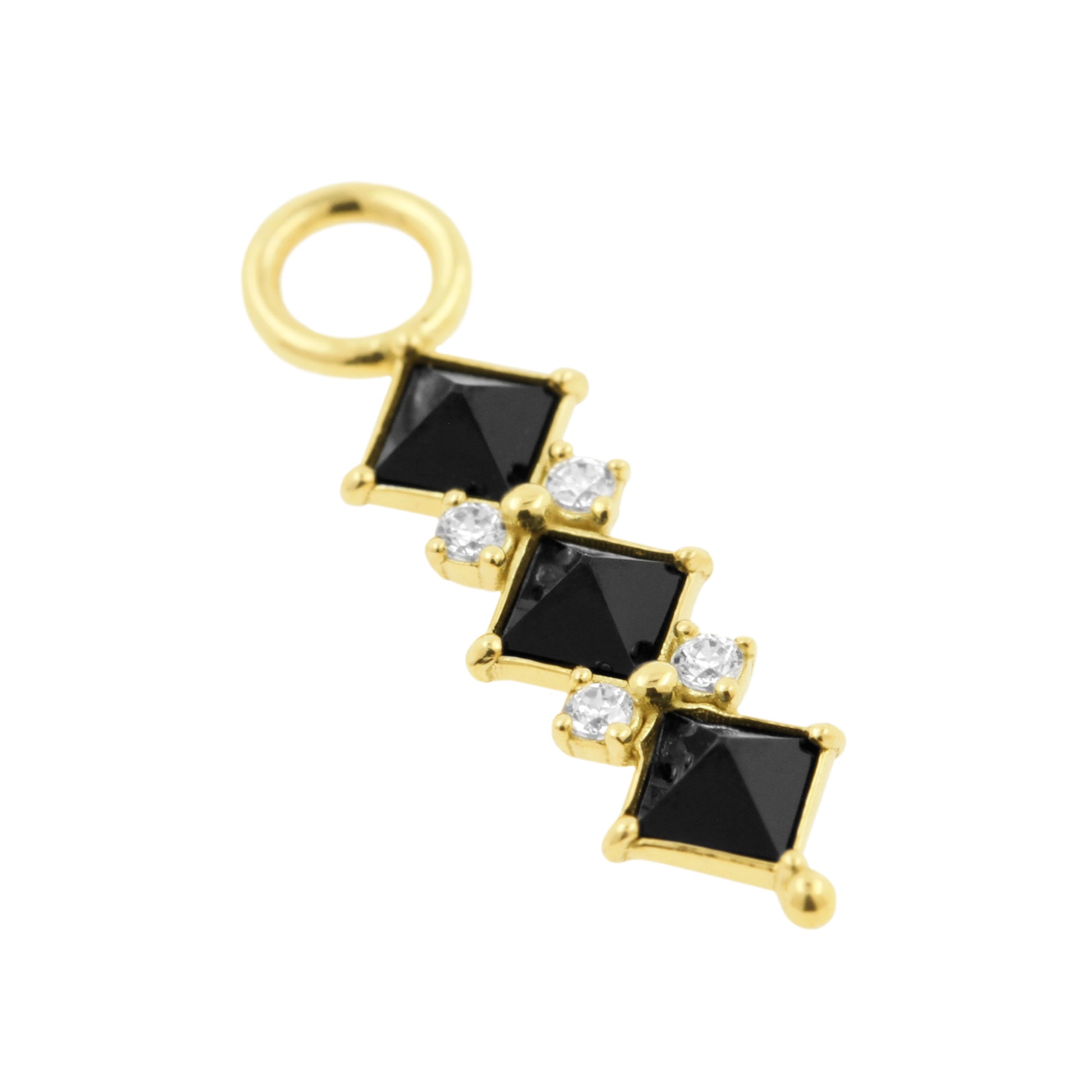 A refined detail that adds a subtle accent to your click ring. This charm is crafted from solid 18 karat gold and finished with a lab-created nano gem in black (pyramid cut).