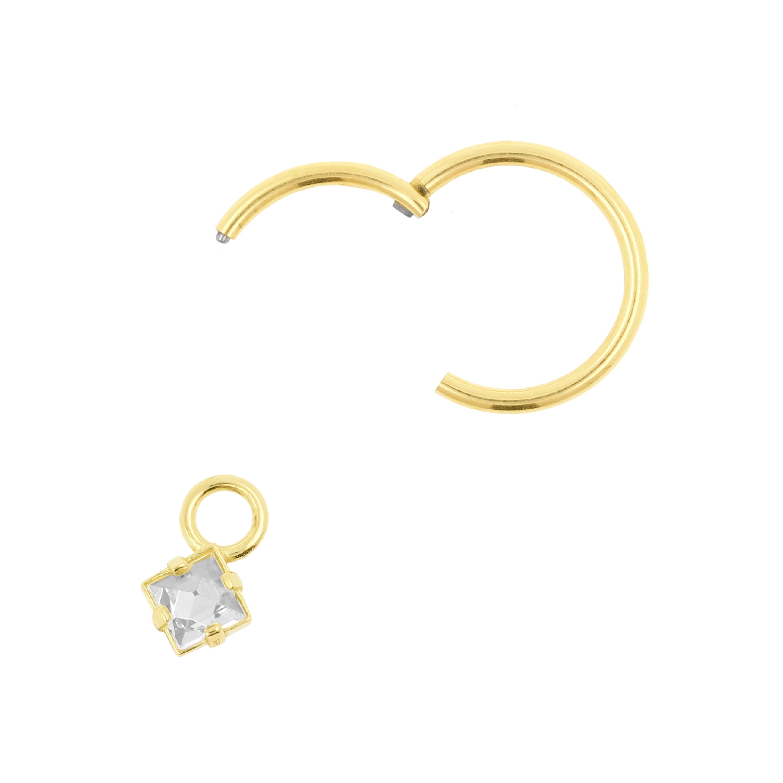 A refined detail that adds a subtle accent to your click ring. This charm is crafted from solid 18 karat gold and finished with a lab-created cubic zirconia stone in clear (pyramid cut).