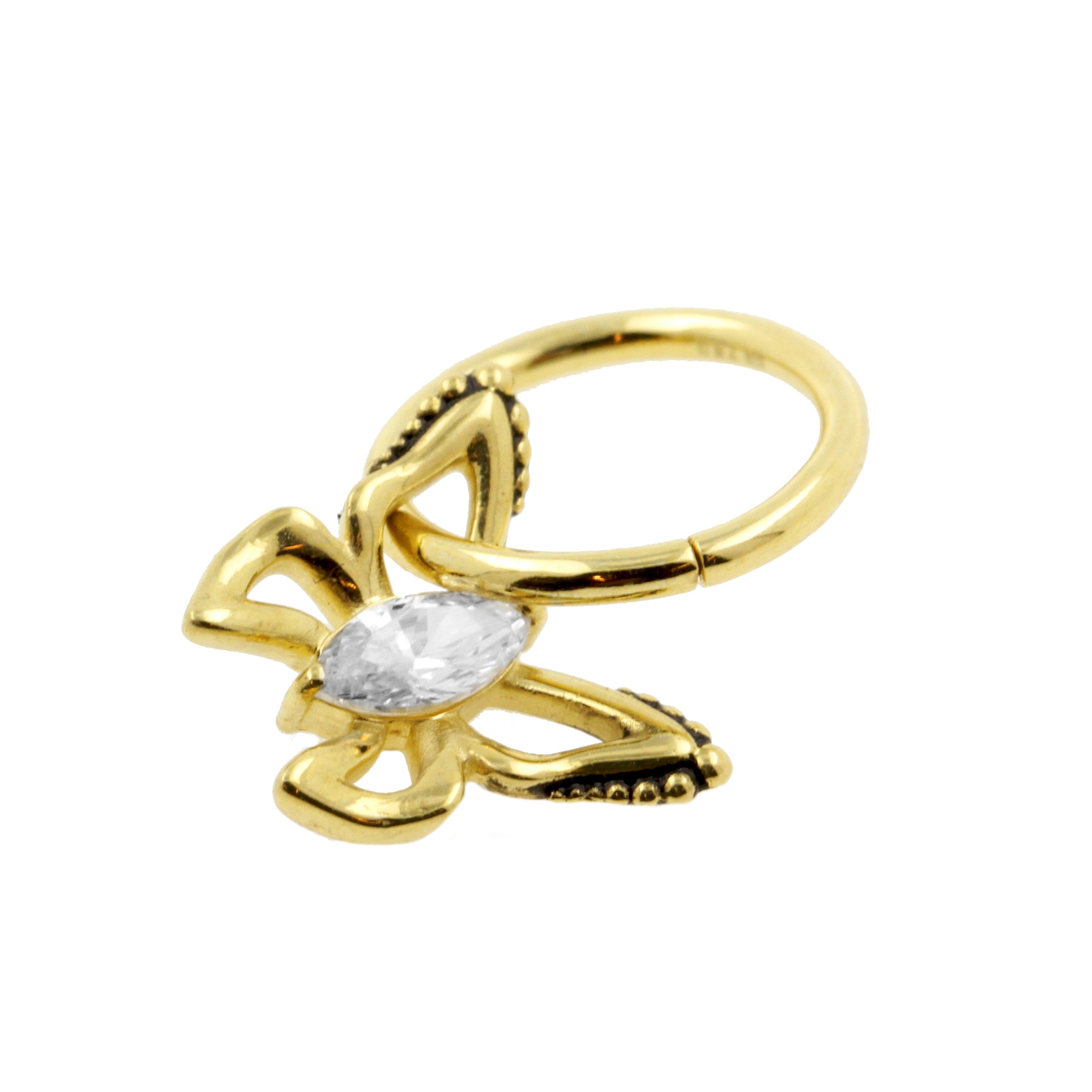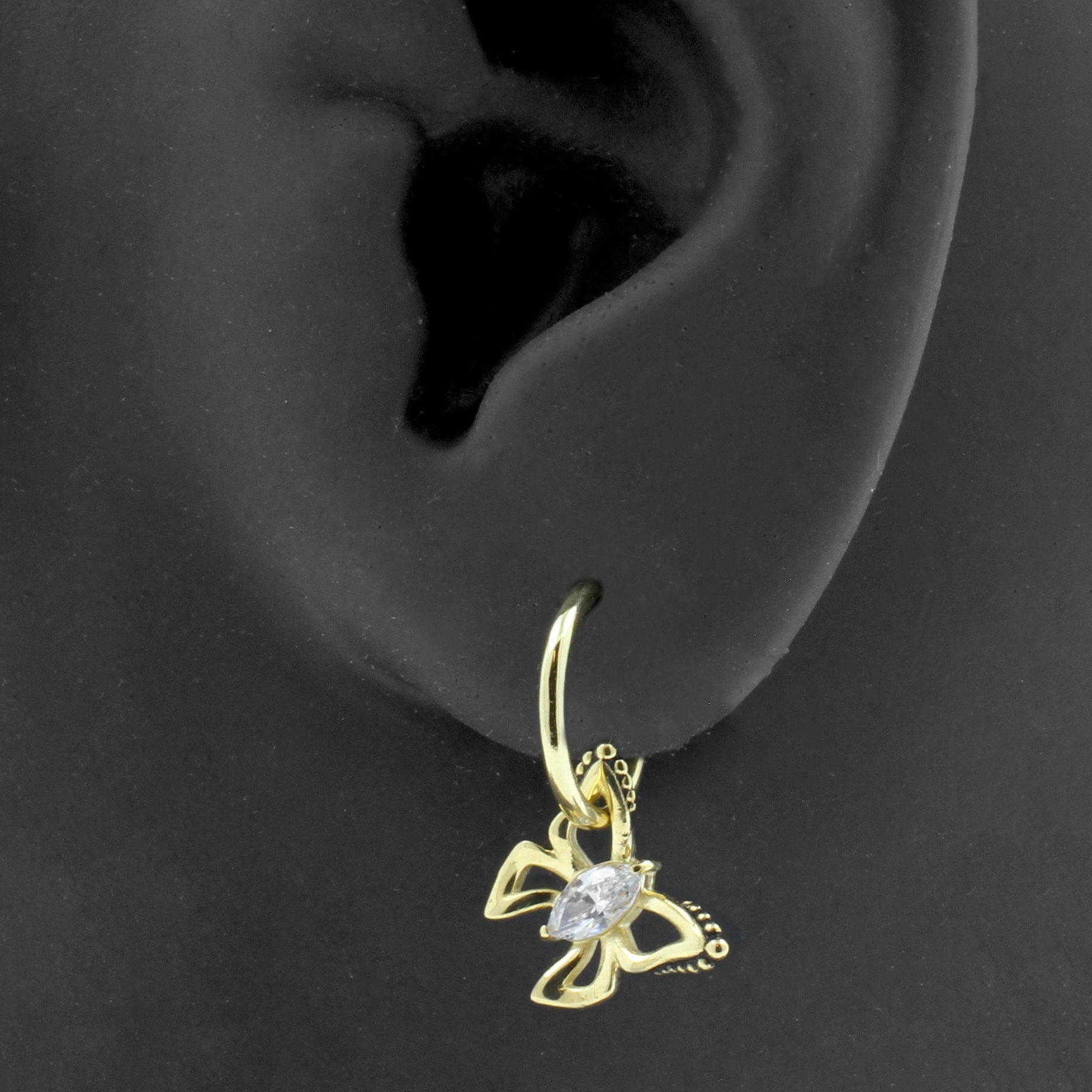 18 Karat Gold Click Ring Charm - Zirconia Butterfly