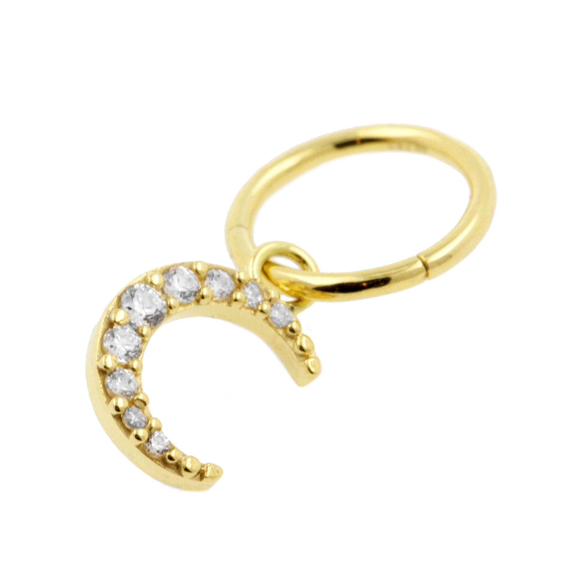 18 Karat Gold Click Ring Charm - Zirconia Moon