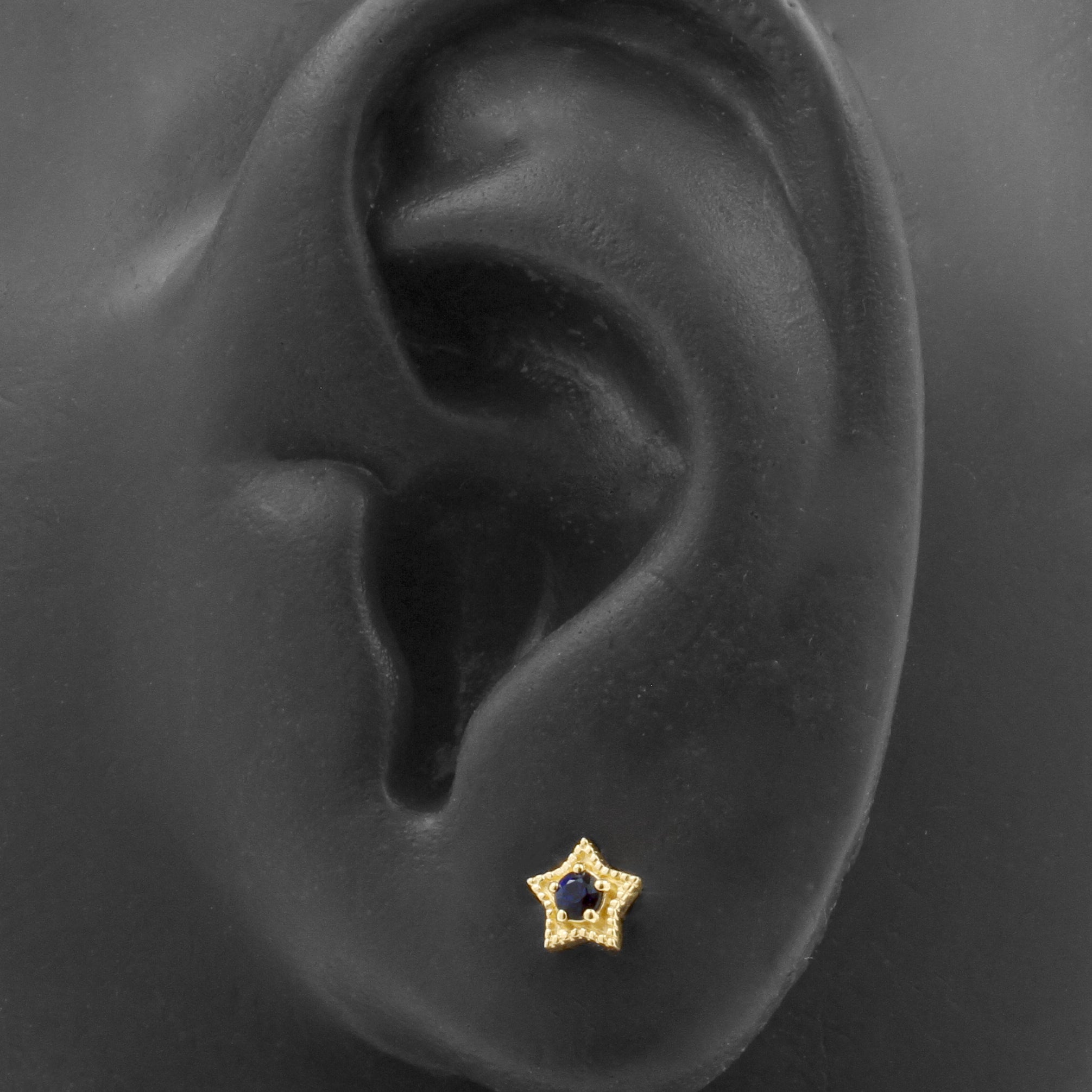 Are you going for subtle chique or a statement look? Whatever you're looking for, create your perfect look with ou 18 Karat gold jewelry! Our jewelry accessories instantly add a classy touch to every fashion outfit, and are perfect for creating the most exquisite curated ears. Our 18 karat gold jewelry is comfortable, trendy and made of the highest quality, genuine gold. Each threaded accessory features a beautiful design with high quality finish, set with diffusion sapphire. Suitable for 1,2 mm internally threaded piercing jewelry (extra info: the thread of the accessory itself measures 0,8 mm in thickness and is suitable for 1,2 mm All Over Piercings internally threaded piercing jewelry). You will receive the threaded accessory only upon ordering, without stud or post. Please note that due to the unique shape of the attachment, changing jewelry might be a bit more challenging. But practice makes perfect and it will all be more than worth it in the end, our gold piercing accessories will turn your piercings into real eyecatchers!