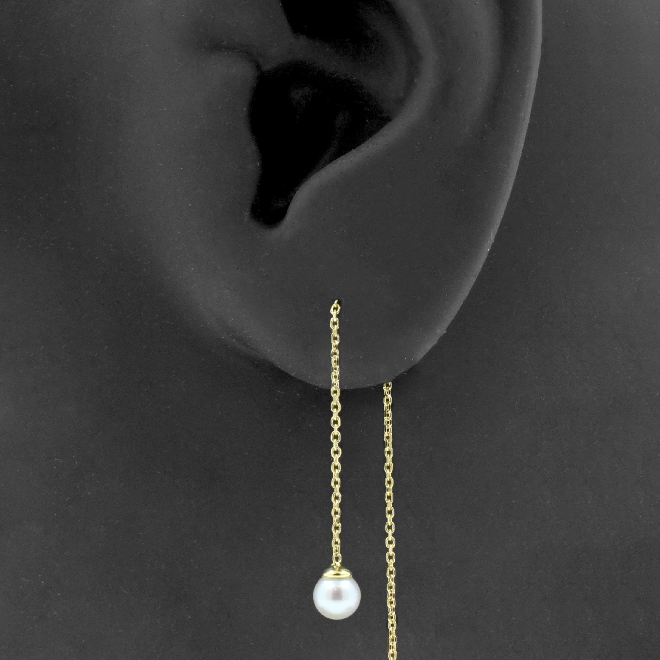 Beautiful Ear Threader made of genuine, 18 karat gold. The perfect match for regular sized earrings! This Ear Threader is suitable for 0,8 mm earrings and will stay firmly in place, once inserted. Each chain earring is fitted with a smooth end, which is used to insert the earring into your piercing. Set with lovely freshwater pearl to add a little extra elegance to your look.