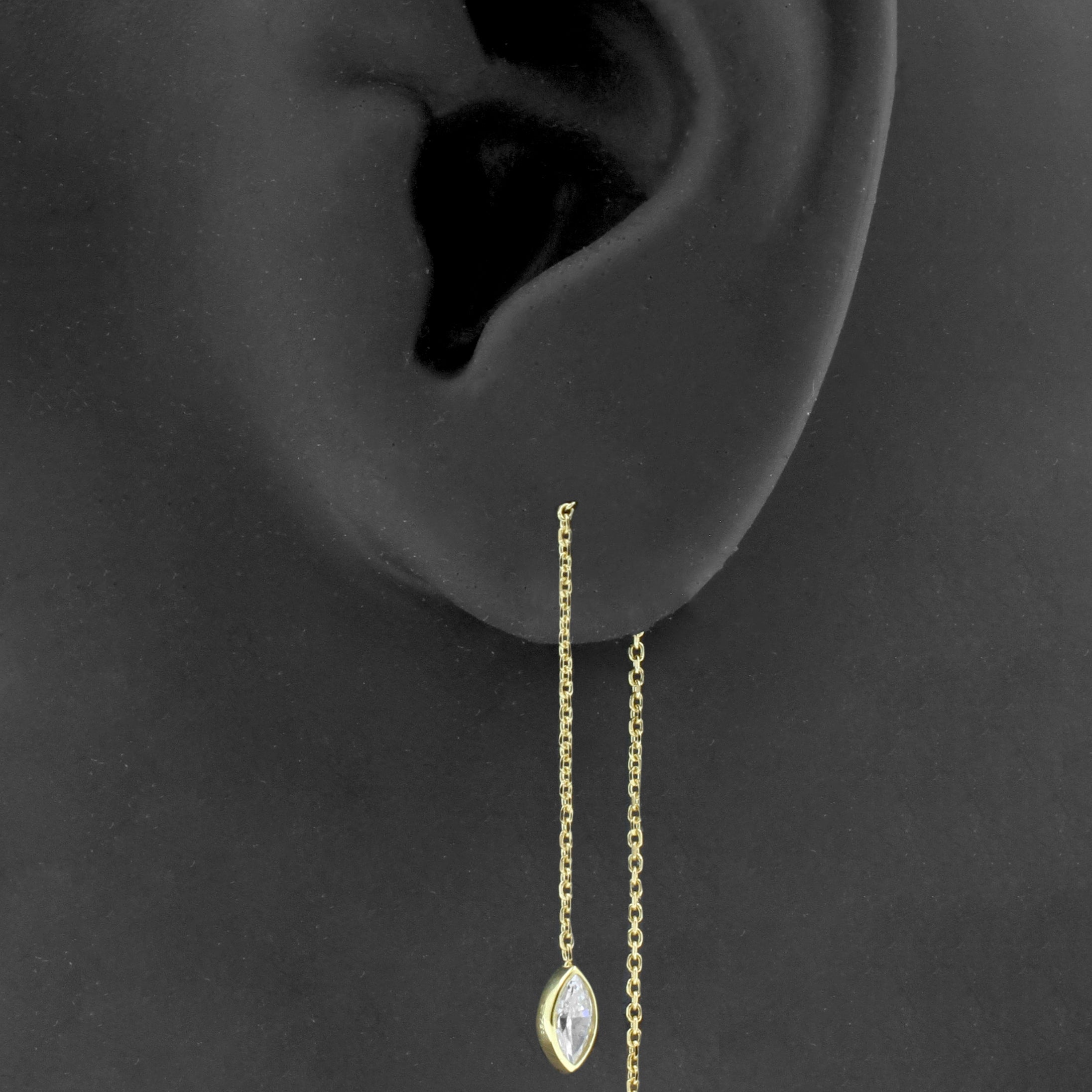 18 Karat Gold Ear Threader - Zirconia Marquise