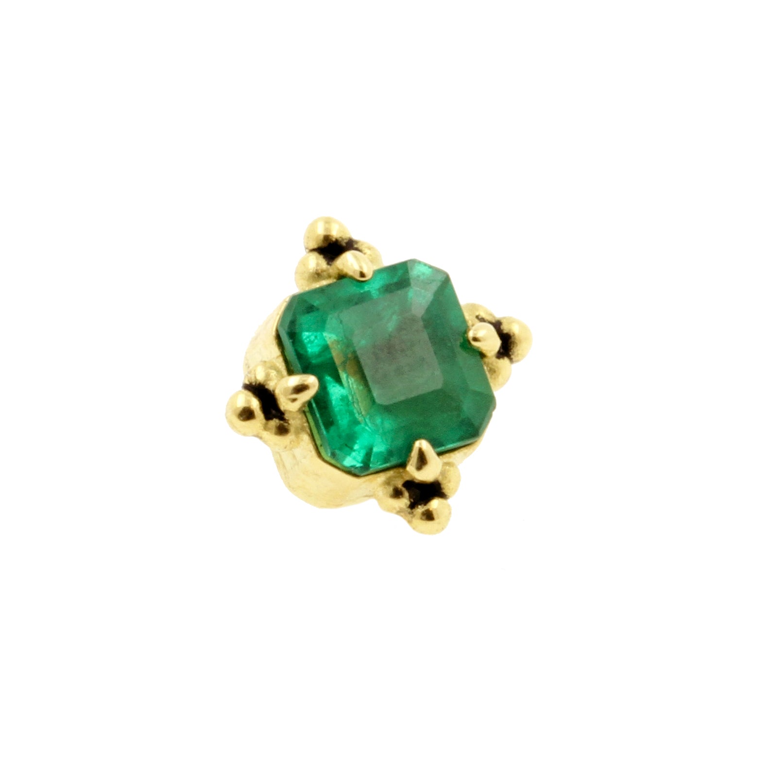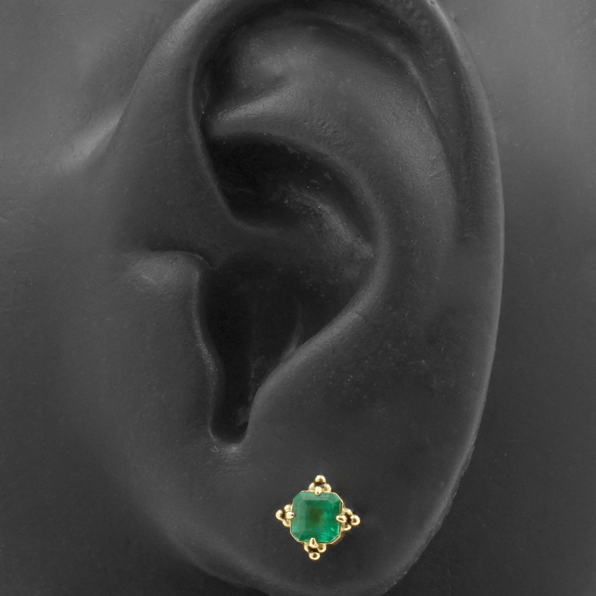 Are you going for subtle chique or a statement look? Whatever you're looking for, create your perfect look with ou 18 Karat gold jewelry! Our jewelry accessories instantly add a classy touch to every fashion outfit, and are perfect for creating the most exquisite curated ears. Our 18 karat gold jewelry is comfortable, trendy and made of the highest quality, genuine gold. Each threaded accessory features a beautiful design with high quality finish, set with genuine emerald. Suitable for 1,2 mm internally threaded piercing jewelry (extra info: the thread of the accessory itself measures 0,8 mm in thickness and is suitable for 1,2 mm All Over Piercings internally threaded piercing jewelry). You will receive the threaded accessory only upon ordering, without stud or post. Please note that due to the unique shape of the attachment, changing jewelry might be a bit more challenging. But practice makes perfect and it will all be more than worth it in the end, our gold piercing accessories will turn your piercings into real eyecatchers!