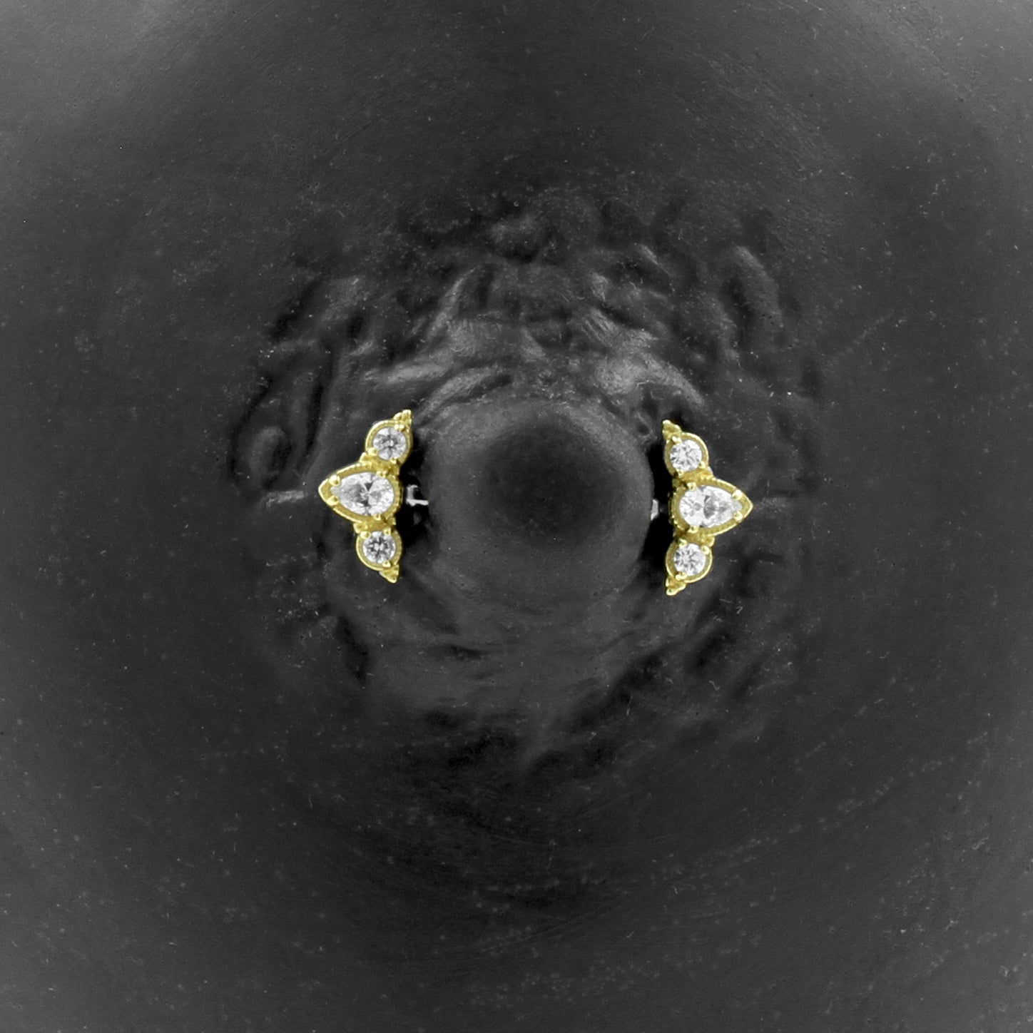 Easy to use and supercomfortable piercingjewelry, completely threadless! This threadless nipple barbell is made of titanium, measures 1,6 mm in thickness and is available in different lengths. The barbell is fitted with beautiful, 18 karat gold accessories set with premium zirconia. Perfect for nipple piercings, or all kinds of other piercings. Threadless piercing jewelry is very comfortable and uses an easy push/pull system that makes changing your jewelry a breeze. Our threadless piercings are comfy, stylish and the perfect addition to your piering collection.