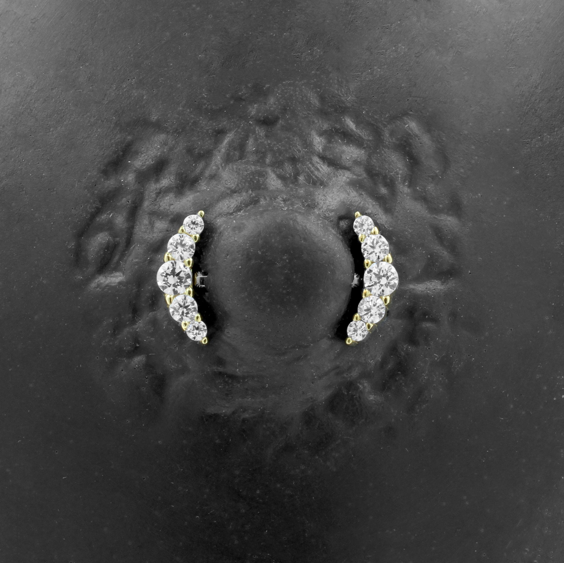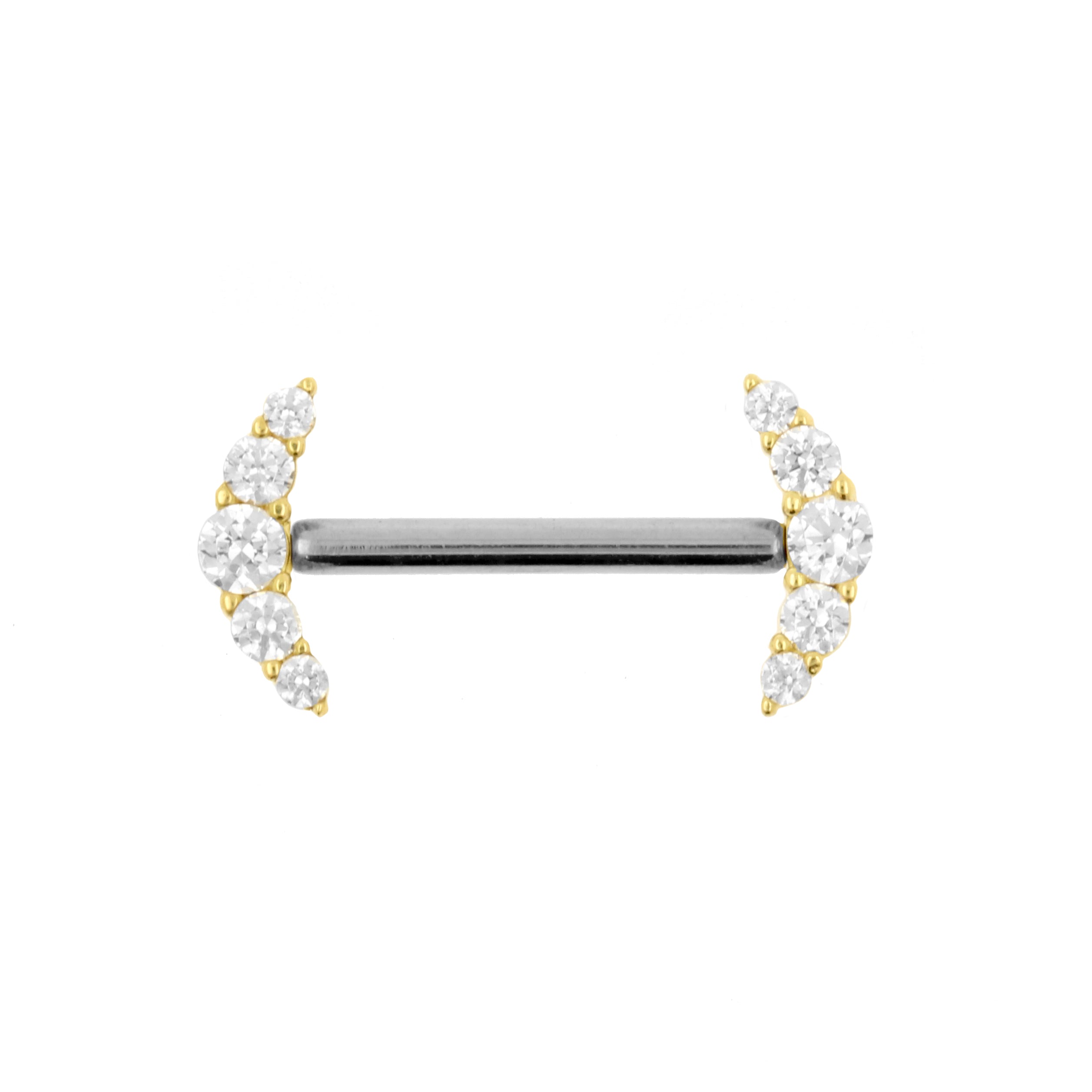 Easy to use and supercomfortable piercingjewelry, completely threadless! This threadless nipple barbell is made of titanium, measures 1,6 mm in thickness and is available in different lengths. The barbell is fitted with beautiful, 18 karat gold accessories set with premium zirconia. Perfect for nipple piercings, or all kinds of other piercings. Threadless piercing jewelry is very comfortable and uses an easy push/pull system that makes changing your jewelry a breeze. Our threadless piercings are comfy, stylish and the perfect addition to your piering collection.