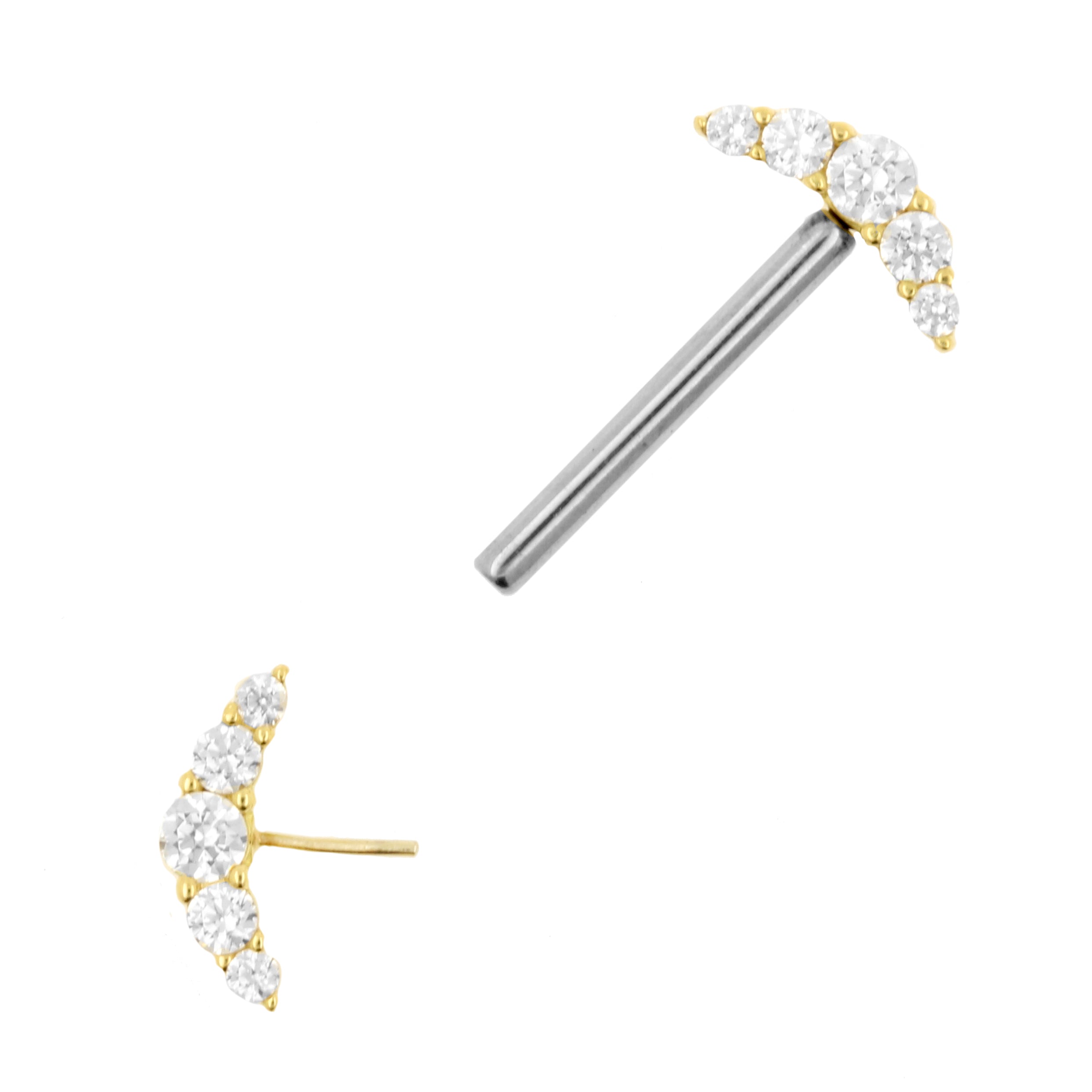 Our threadless accessories are slightly pre-bent. Please check if this meets your expectations upon first use. If not, insert the pin about halfway into the stem. Using your hands only, slightly bend the pin down. Push the pin completely into place to secure your accessory. The slightly bended pin ensures that the piercing jewelry will stay into place. Pull at both ends to remove the jewelry. Check the illustrated instructions added to the product photos.