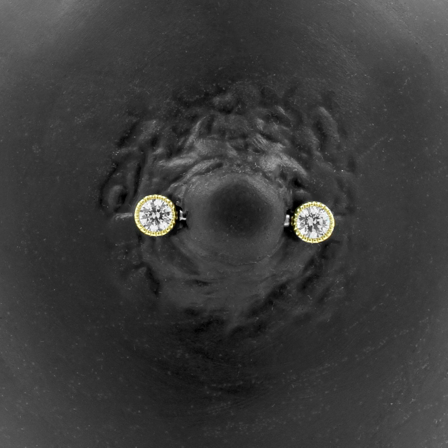 18 Karat Gold Nipple Barbell With Vintage Discs