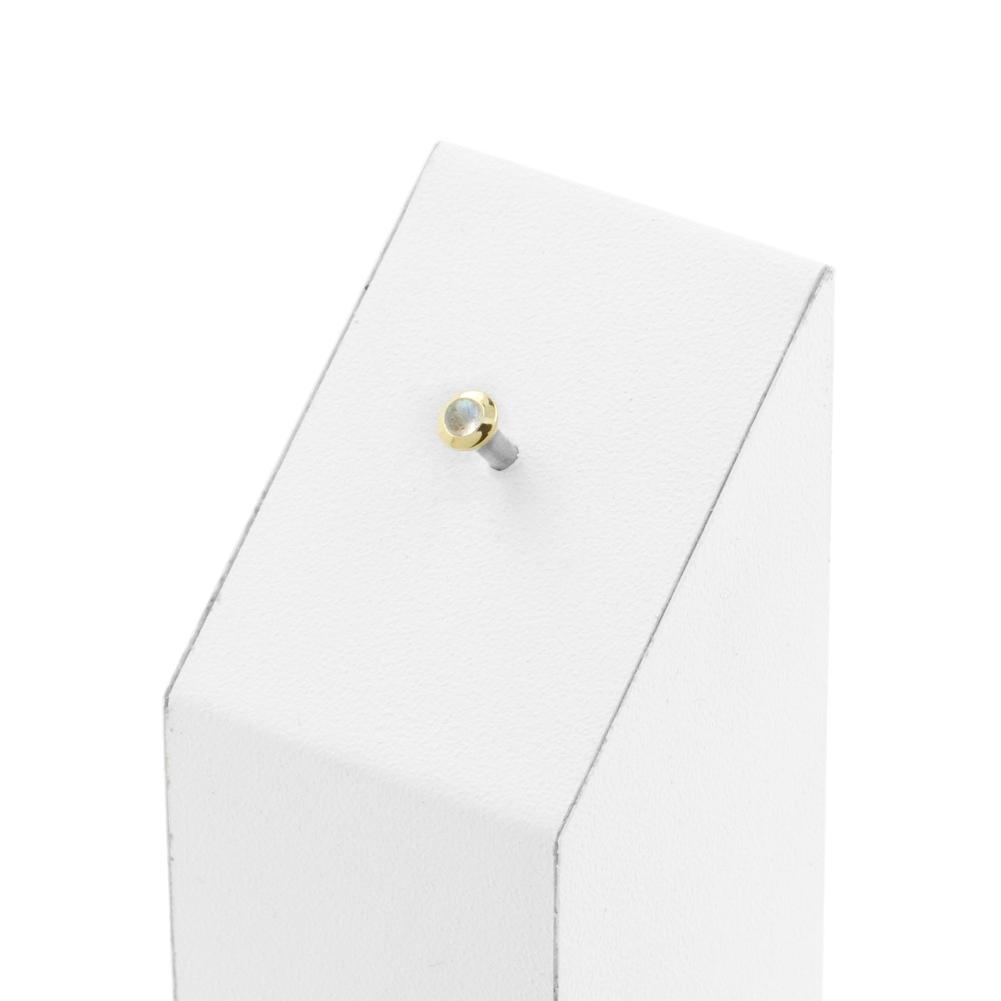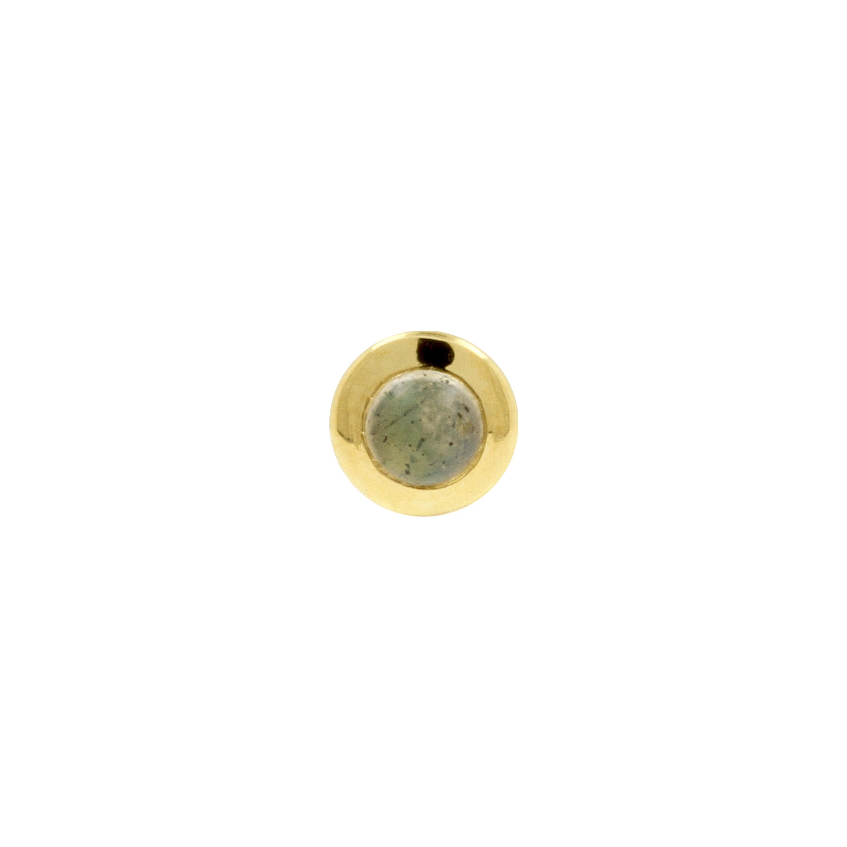 18 Karat Gold Top - Labradorite instantly adds a stylish touch to your piercing. This Threadless Top is made of 18 Karat Gold with a labradorite in Grey. The threadless system allows you to easily combine this top with all our bars, which we call Threadless Base, for a perfect fit and ultimate comfort.