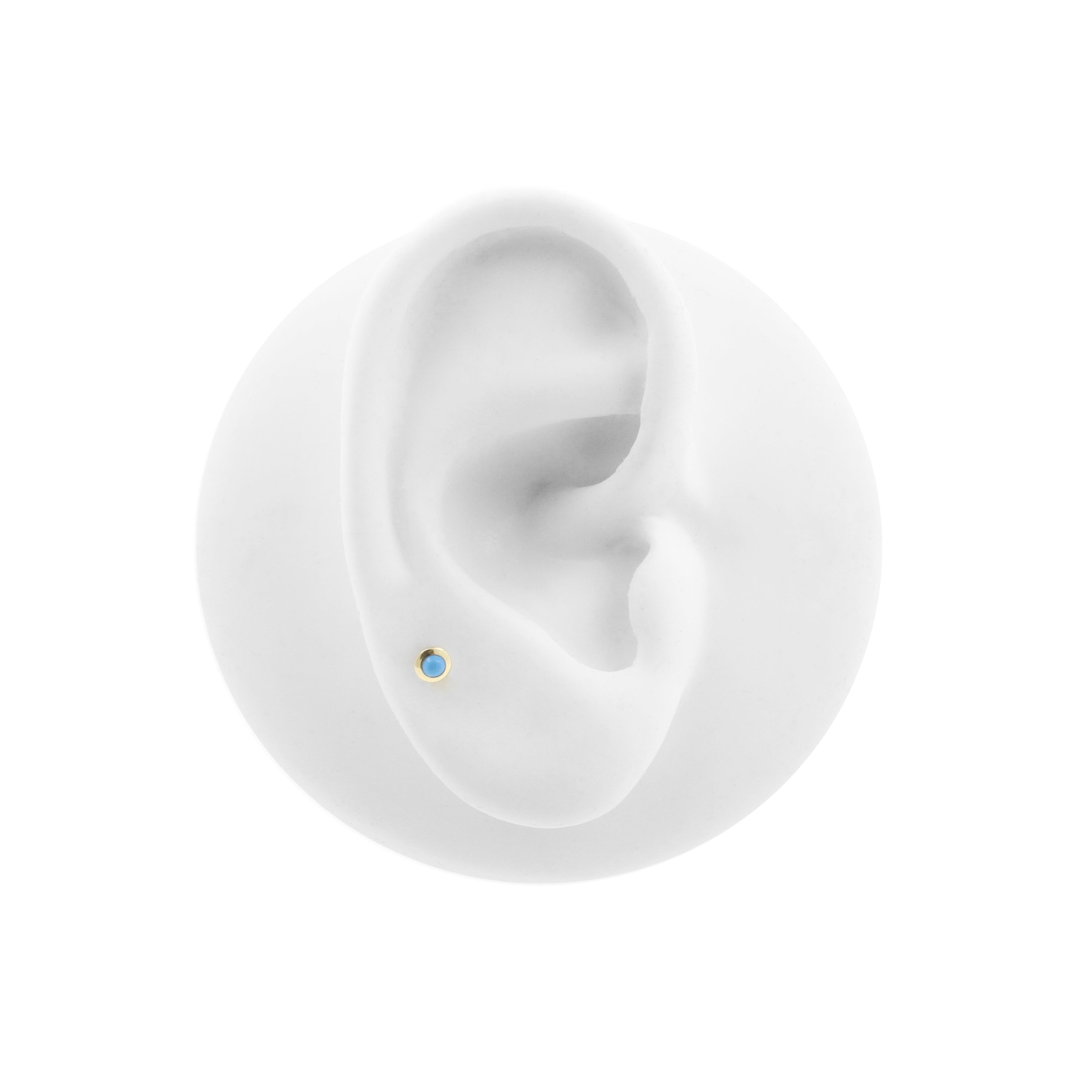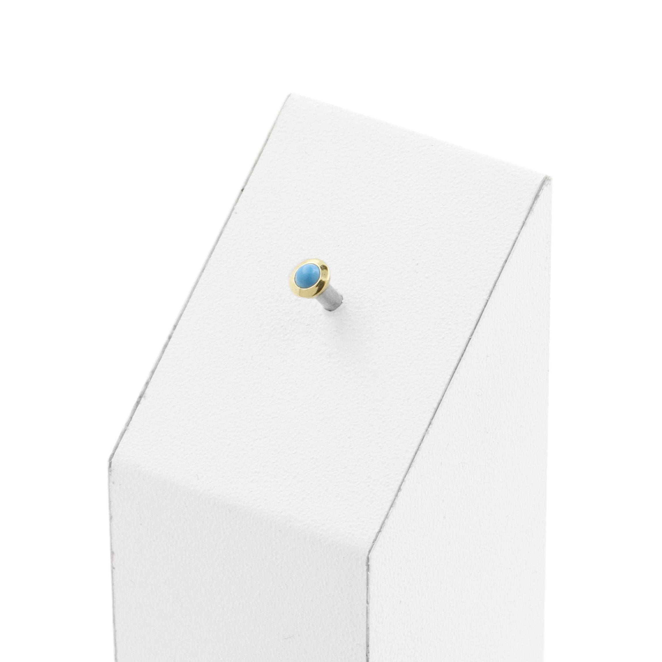 18 Karat Gold Top - Turquoise instantly adds a stylish touch to your piercing. This Threadless Top is made of 18 Karat Gold with a turquoise in Turquoise. The threadless system allows you to easily combine this top with all our bars, which we call Threadless Base, for a perfect fit and ultimate comfort.