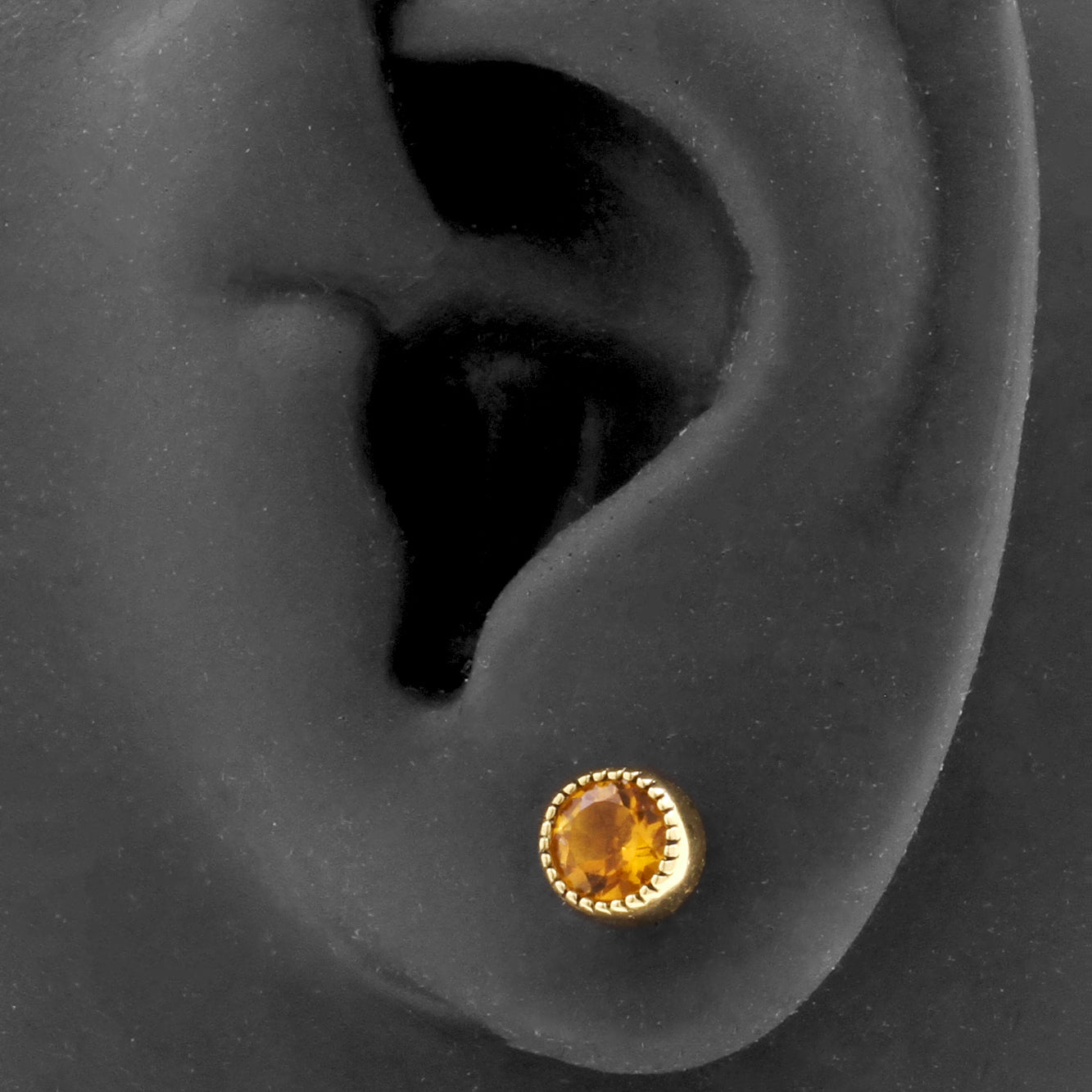 Are you going for subtle chique or a statement look? Whatever you're looking for, create your perfect look with ou 18 Karat gold jewelry! Our jewelry accessories instantly add a classy touch to every fashion outfit, and are perfect for creating the most exquisite curated ears. Our 18 karat gold jewelry is comfortable, trendy and made of the highest quality, genuine gold. Each threaded accessory features a beautiful design with high quality finish, set with genuine citrine. Suitable for 1,2 mm internally threaded piercing jewelry (extra info: the thread of the accessory itself measures 0,8 mm in thickness and is suitable for 1,2 mm All Over Piercings internally threaded piercing jewelry). You will receive the threaded accessory only upon ordering, without stud or post. Please note that due to the unique shape of the attachment, changing jewelry might be a bit more challenging. But practice makes perfect and it will all be more than worth it in the end, our gold piercing accessories will turn your piercings into real eyecatchers!