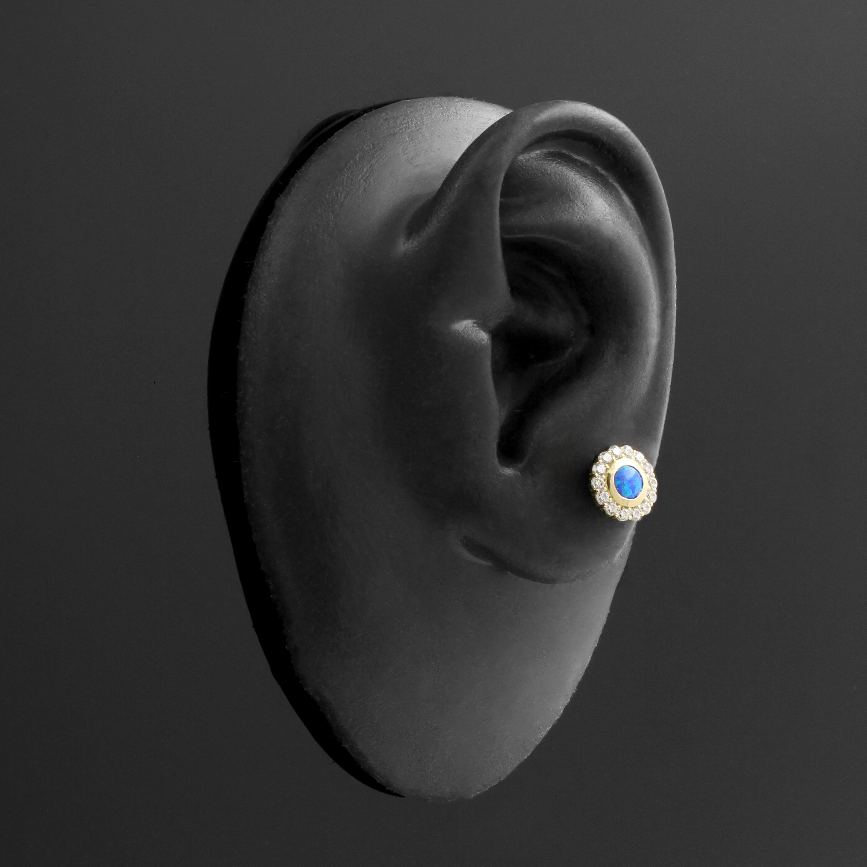 Are you going for subtle chique or a statement look? Whatever you're looking for, create your perfect look with ou 18 Karat gold jewelry! Our jewelry accessories instantly add a classy touch to every fashion outfit, and are perfect for creating the most exquisite curated ears. Our 18 karat gold jewelry is comfortable, trendy and made of the highest quality, genuine gold. Each threaded accessory features a beautiful design with high quality finish, set with synthetic opal and premium zirconia. Suitable for 1,2 mm internally threaded piercing jewelry (extra info: the thread of the accessory itself measures 0,8 mm in thickness and is suitable for 1,2 mm All Over Piercings internally threaded piercing jewelry). You will receive the threaded accessory only upon ordering, without stud or post. Please note that due to the unique shape of the attachment, changing jewelry might be a bit more challenging. But practice makes perfect and it will all be more than worth it in the end, our gold piercing accessories will turn your piercings into real eyecatchers!