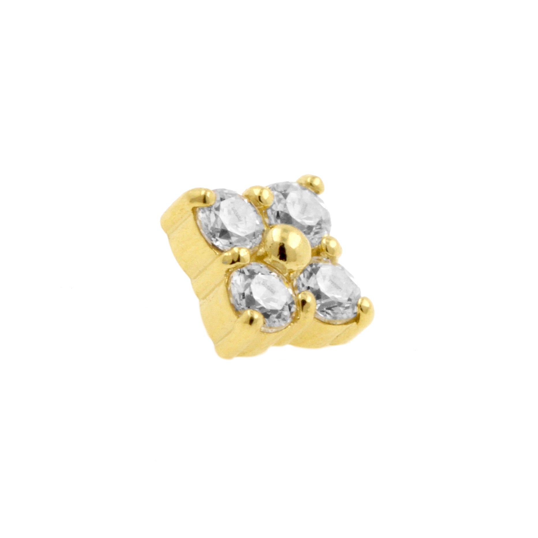 Are you going for subtle chique or a statement look? Whatever you're looking for, create your perfect look with ou 18 Karat gold jewelry! Our jewelry accessories instantly add a classy touch to every fashion outfit, and are perfect for creating the most exquisite curated ears. Our 18 karat gold jewelry is comfortable, trendy and made of the highest quality, genuine gold. Each threaded accessory features a beautiful design with high quality finish, set with zirconia. Suitable for 1,2 mm internally threaded piercing jewelry (extra info: the thread of the accessory itself measures 0,8 mm in thickness and is suitable for 1,2 mm All Over Piercings internally threaded piercing jewelry). You will receive the threaded accessory only upon ordering, without stud or post. Please note that due to the unique shape of the attachment, changing jewelry might be a bit more challenging. But practice makes perfect and it will all be more than worth it in the end, our gold piercing accessories will turn your piercings into real eyecatchers!