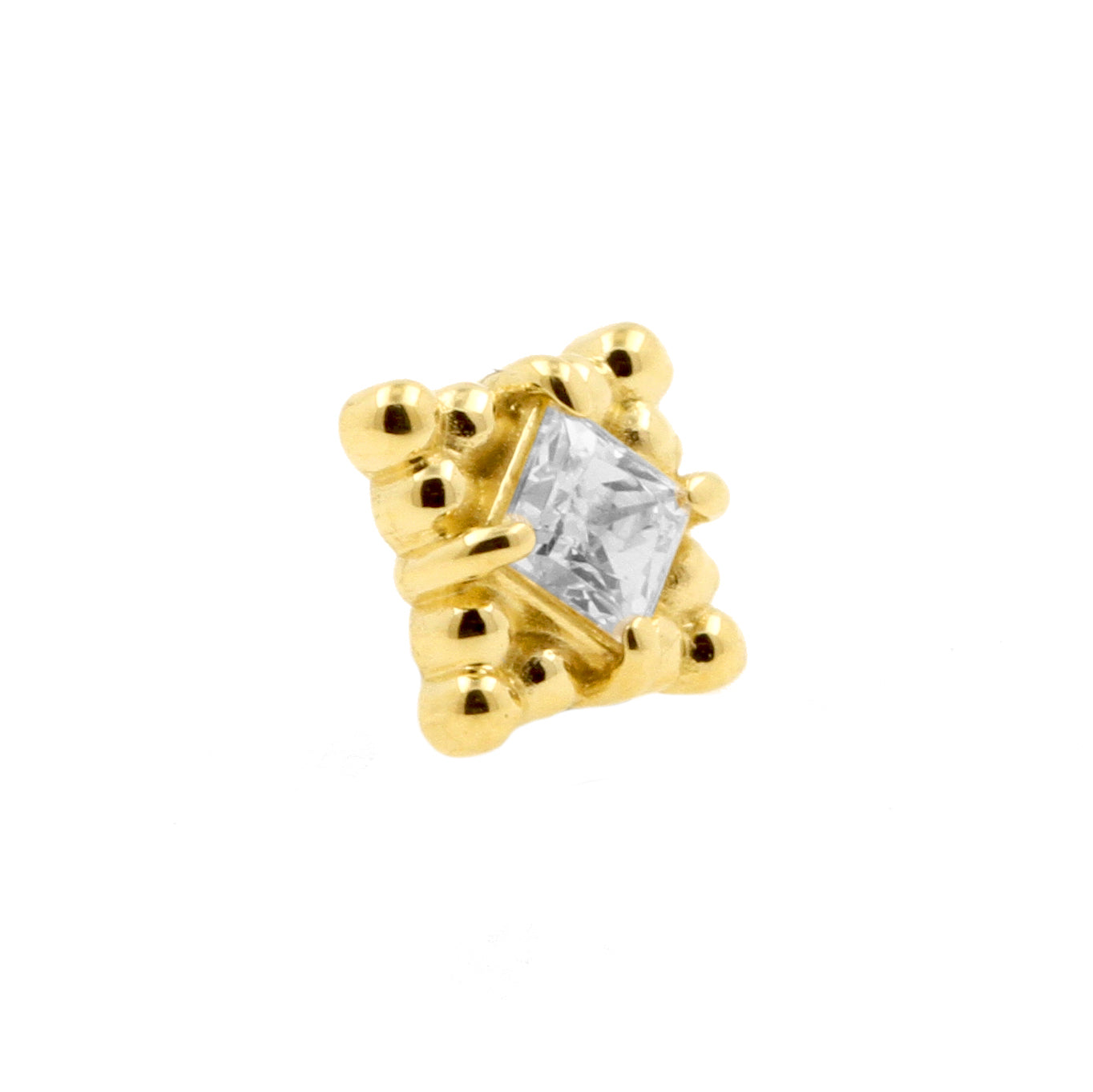 Stand out in the crowd with our threaded piercing accessories made of real gold! Our accessories are perfect for all kinds of piercings. Each accessory features a beautiful design with high quality finish, set with zirconia. Made of real, 18 karat gold and Suitable for 1,2 mm internally threaded piercing jewelry (extra info: the thread of the accessory itself measures 0,8 mm in thickness and is suitable for 1,2 mm All Over Piercings internally threaded piercing jewelry). You will receive the threaded accessory only upon ordering, without stud or post. Please note that due to the unique shape of the attachment, changing jewelry might be a bit more challenging. But practice makes perfect and it will all be more than worth it in the end, our gold piercing accessories will turn your piercings into real eyecatchers!