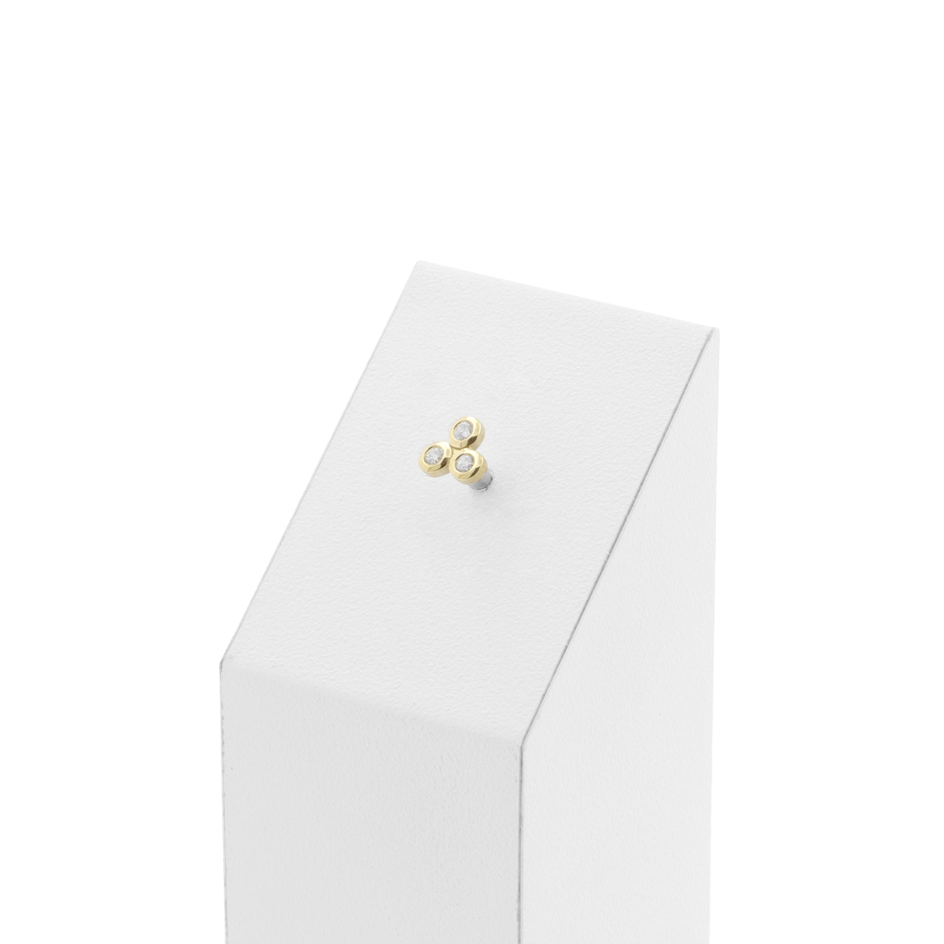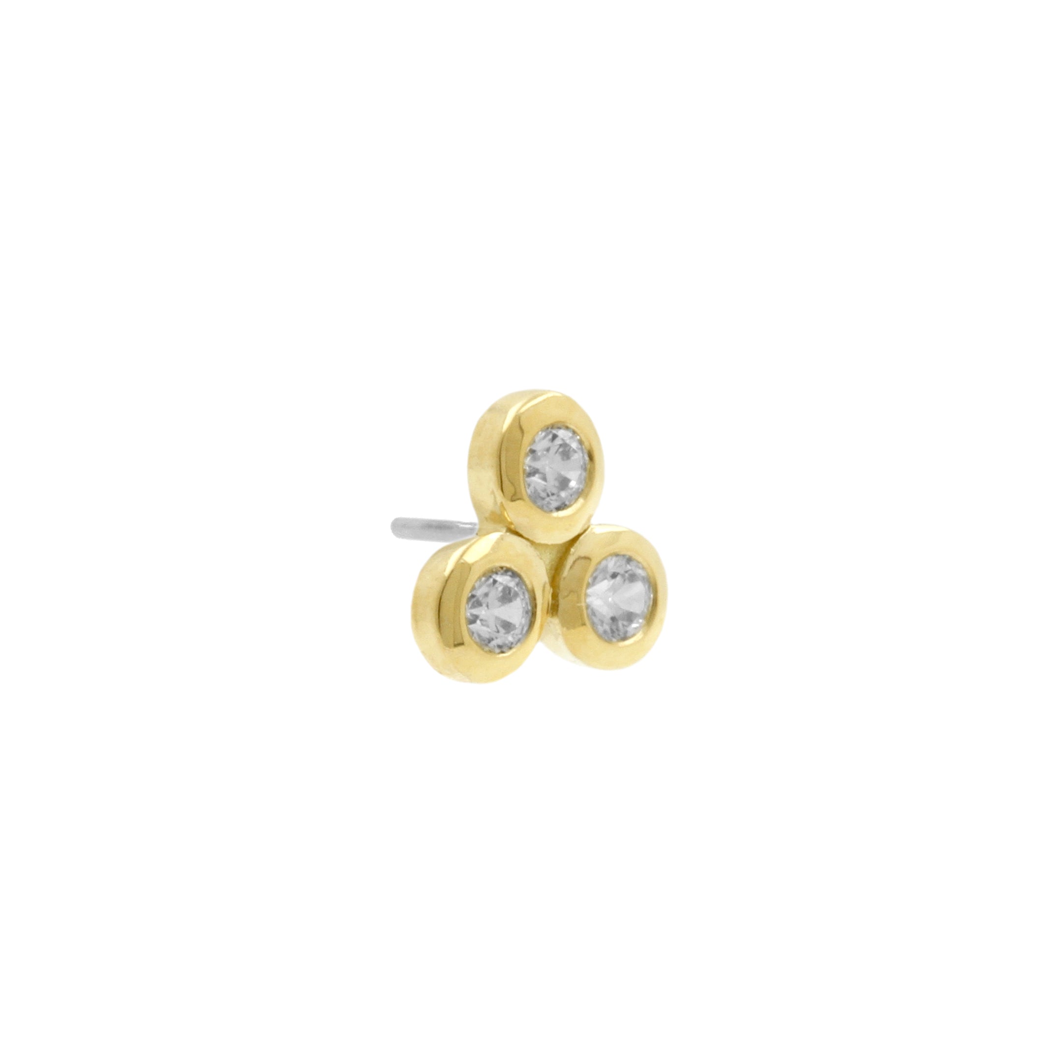 18 Karat Gold Zirconia Cluster Top instantly adds a stylish touch to your piercing. This Threadless Top is made of 18 Karat Gold with a cubic zirconia in Clear. The threadless system allows you to easily combine this top with all our bars, which we call Threadless Base, for a perfect fit and ultimate comfort.