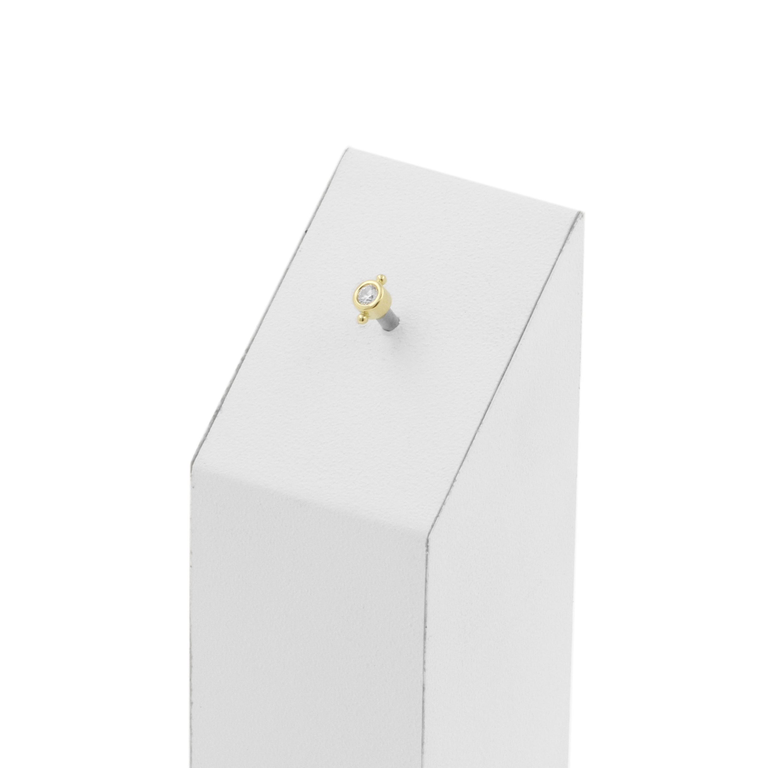 18 Karat Gold Zirconia Dots instantly adds a stylish touch to your piercing. This Threadless Top is made of 18 Karat Gold. The threadless system allows you to easily combine this top with all our bars, which we call Threadless Base, for a perfect fit and ultimate comfort.