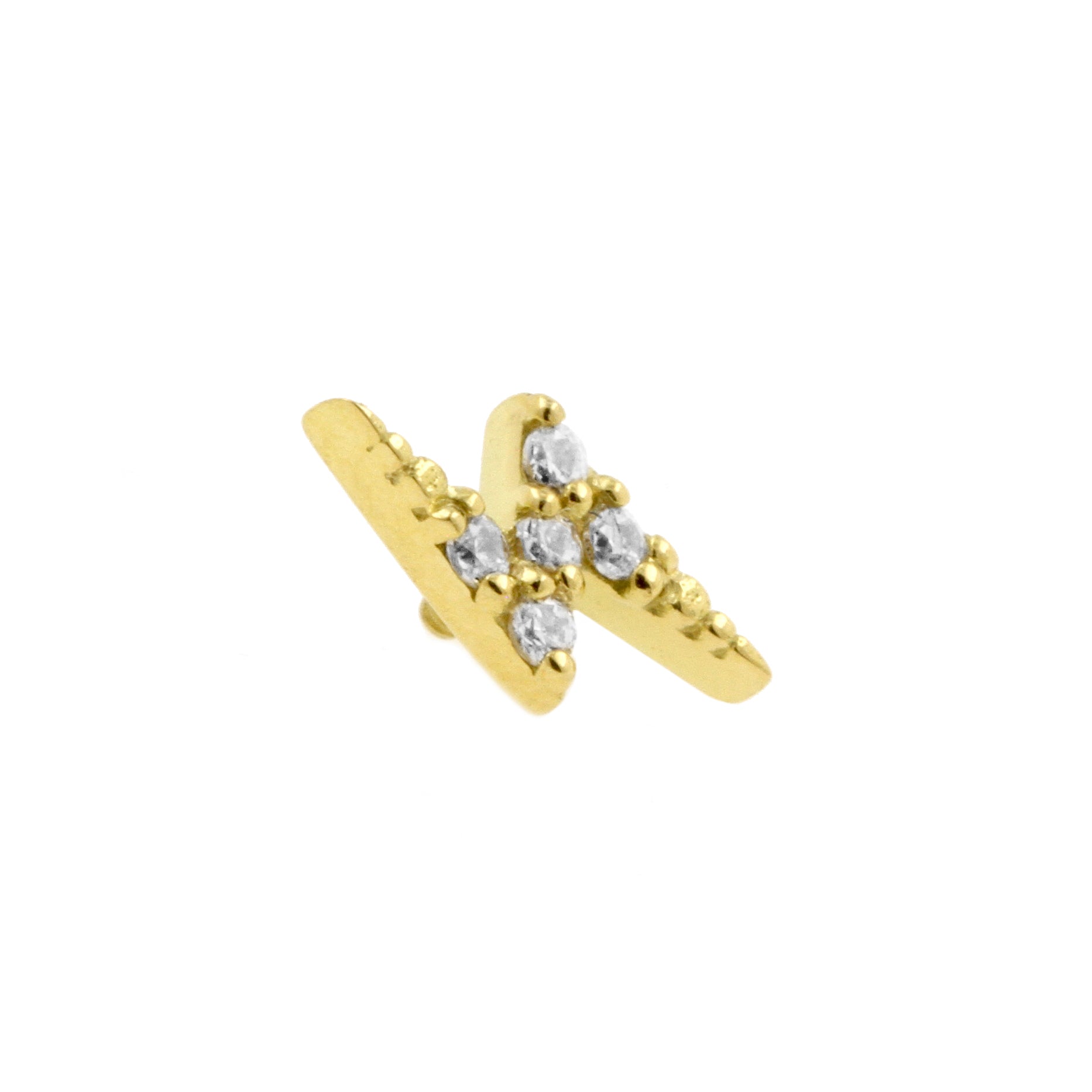 Are you going for subtle chique or a statement look? Whatever you're looking for, create your perfect look with ou 18 Karat gold jewelry! Our jewelry accessories instantly add a classy touch to every fashion outfit, and are perfect for creating the most exquisite curated ears. Our 18 karat gold jewelry is comfortable, trendy and made of the highest quality, genuine gold. Each threaded accessory features a beautiful design with high quality finish, set with zirconia. Suitable for 1,2 mm internally threaded piercing jewelry (extra info: the thread of the accessory itself measures 0,8 mm in thickness and is suitable for 1,2 mm All Over Piercings internally threaded piercing jewelry). You will receive the threaded accessory only upon ordering, without stud or post. Please note that due to the unique shape of the attachment, changing jewelry might be a bit more challenging. But practice makes perfect and it will all be more than worth it in the end, our gold piercing accessories will turn your piercings into real eyecatchers!