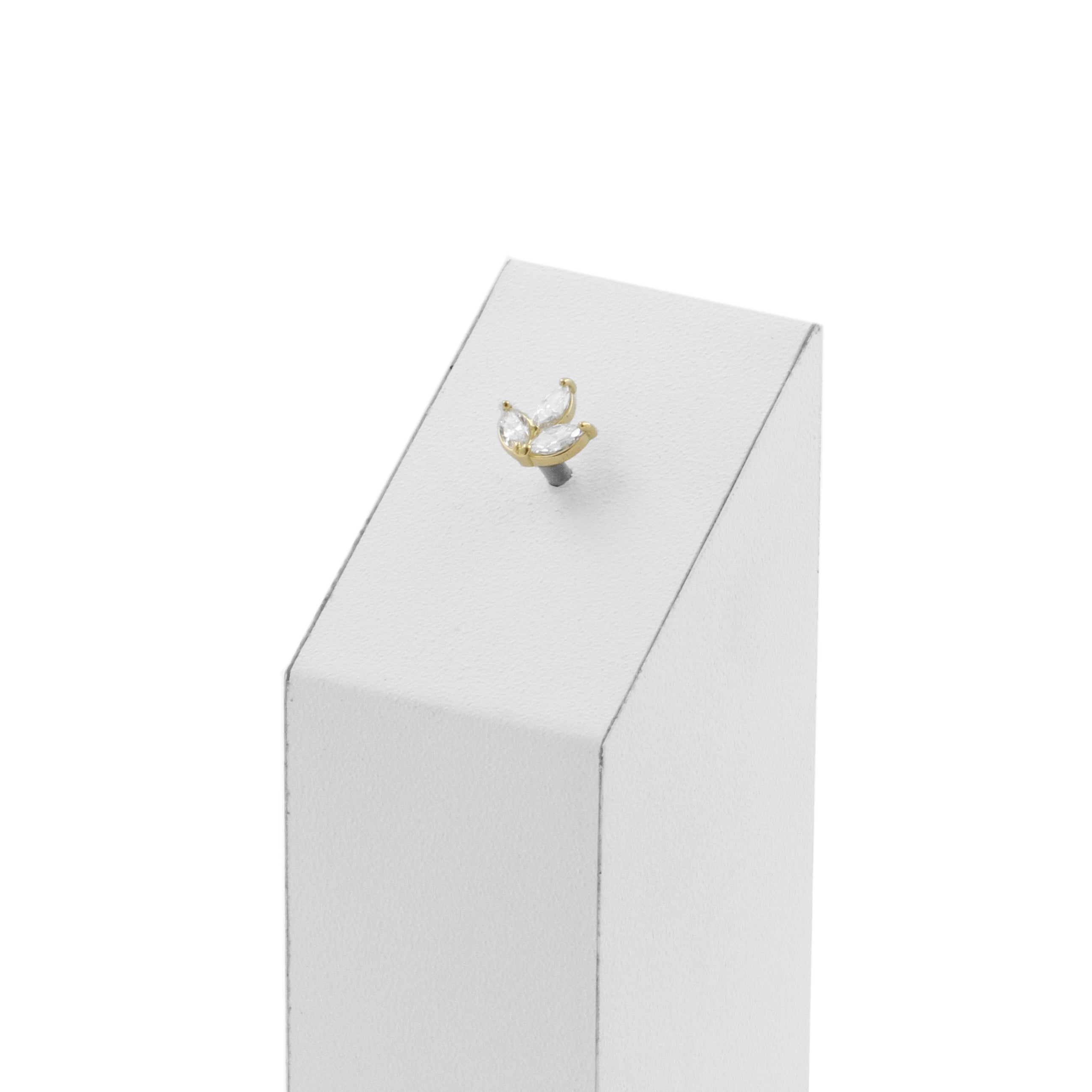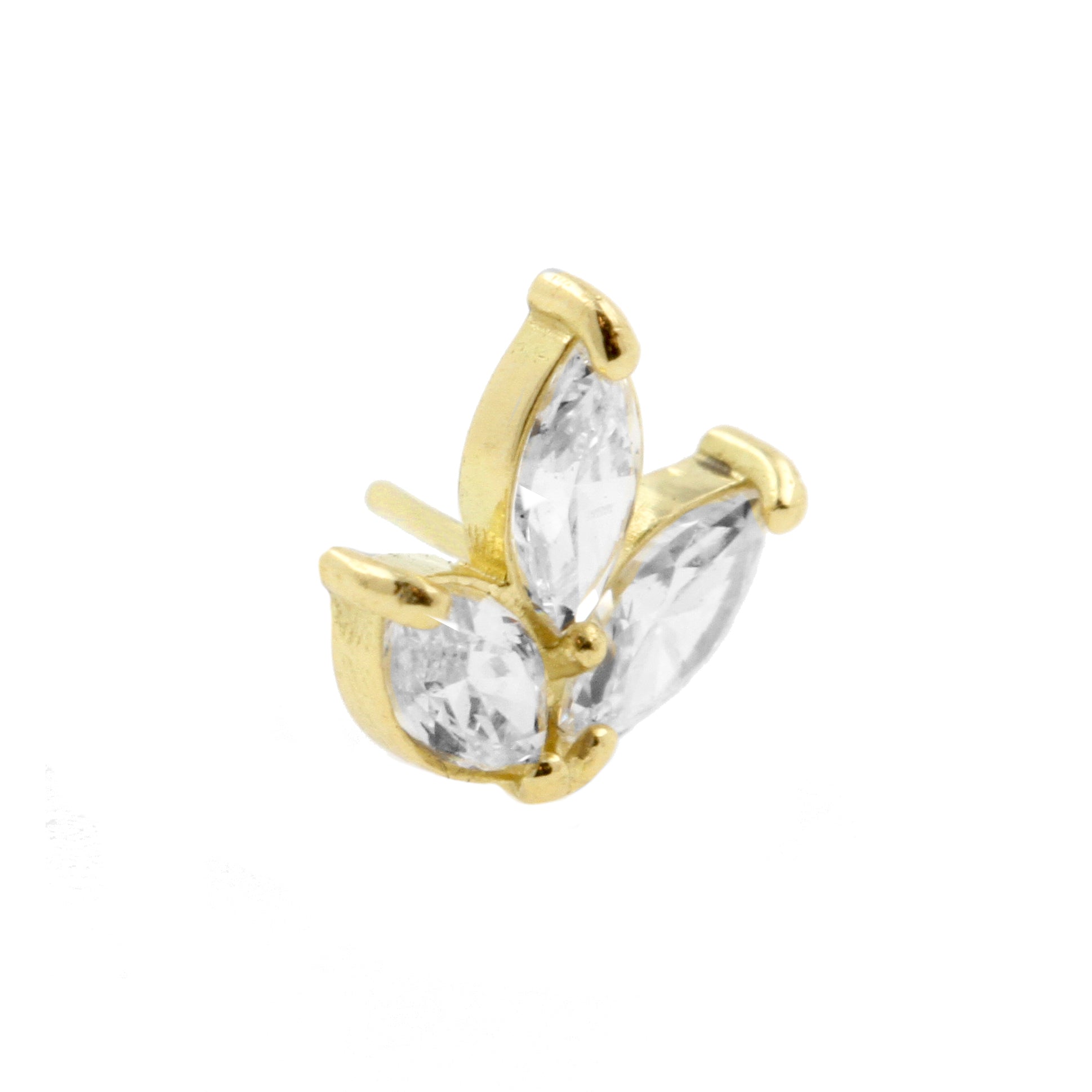 18 Karat Gold Zirconia Marquise Cluster instantly adds a stylish touch to your piercing. This Threadless Top is made of 18 Karat Gold. The threadless system allows you to easily combine this top with all our bars, which we call Threadless Base, for a perfect fit and ultimate comfort.