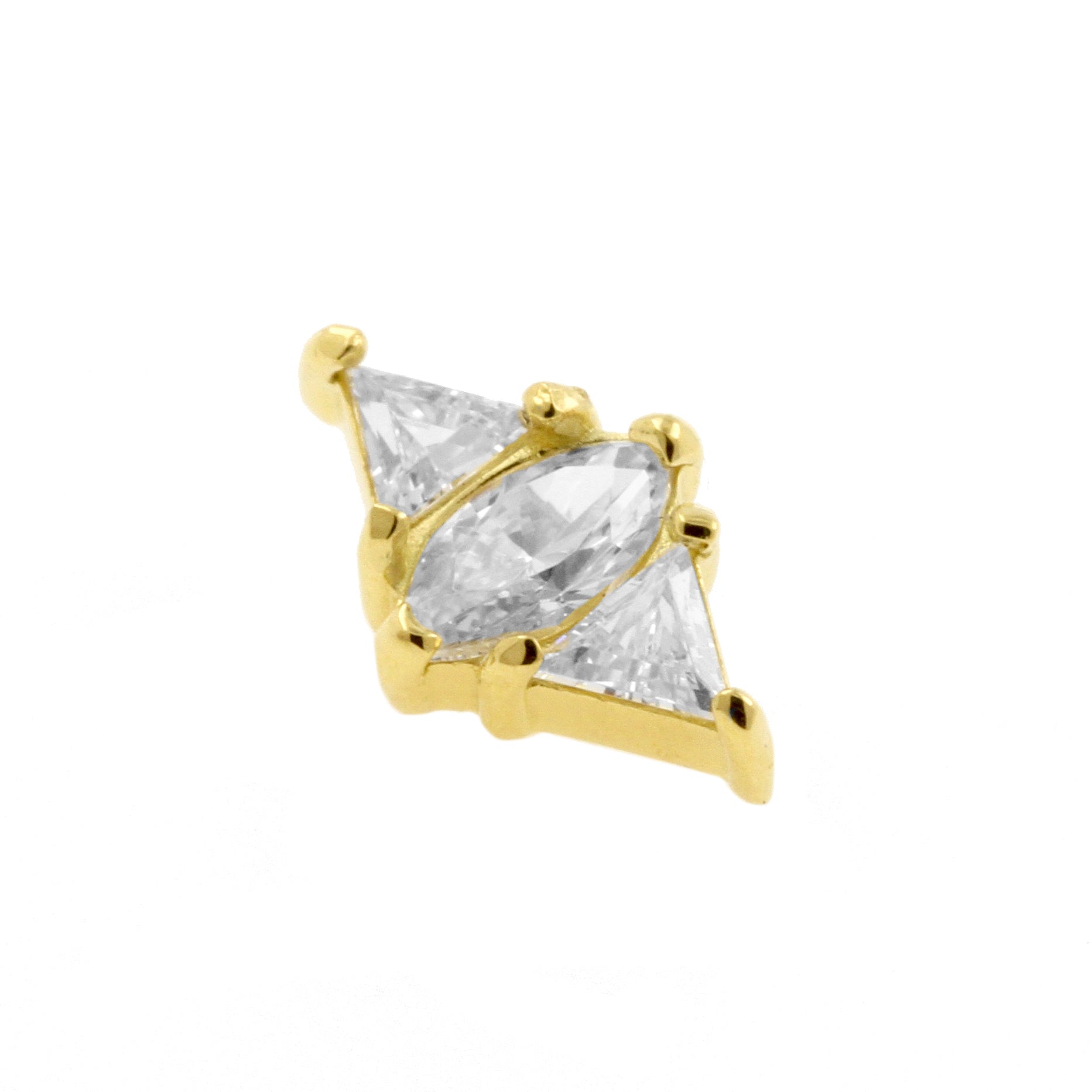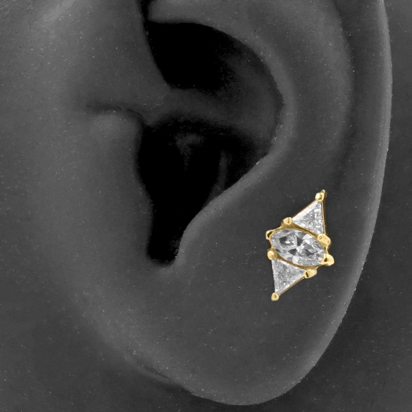 Are you going for subtle chique or a statement look? Whatever you're looking for, create your perfect look with ou 18 Karat gold jewelry! Our jewelry accessories instantly add a classy touch to every fashion outfit, and are perfect for creating the most exquisite curated ears. Our 18 karat gold jewelry is comfortable, trendy and made of the highest quality, genuine gold. Each threaded accessory features a beautiful design with high quality finish, set with zirconia. Suitable for 1,2 mm internally threaded piercing jewelry (extra info: the thread of the accessory itself measures 0,8 mm in thickness and is suitable for 1,2 mm All Over Piercings internally threaded piercing jewelry). You will receive the threaded accessory only upon ordering, without stud or post. Please note that due to the unique shape of the attachment, changing jewelry might be a bit more challenging. But practice makes perfect and it will all be more than worth it in the end, our gold piercing accessories will turn your piercings into real eyecatchers!