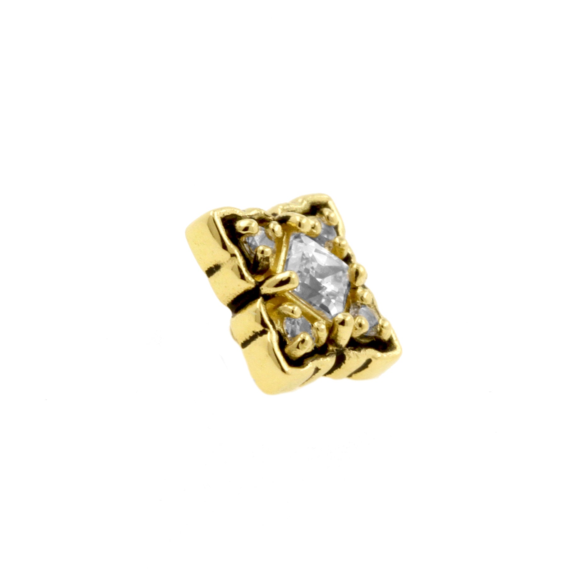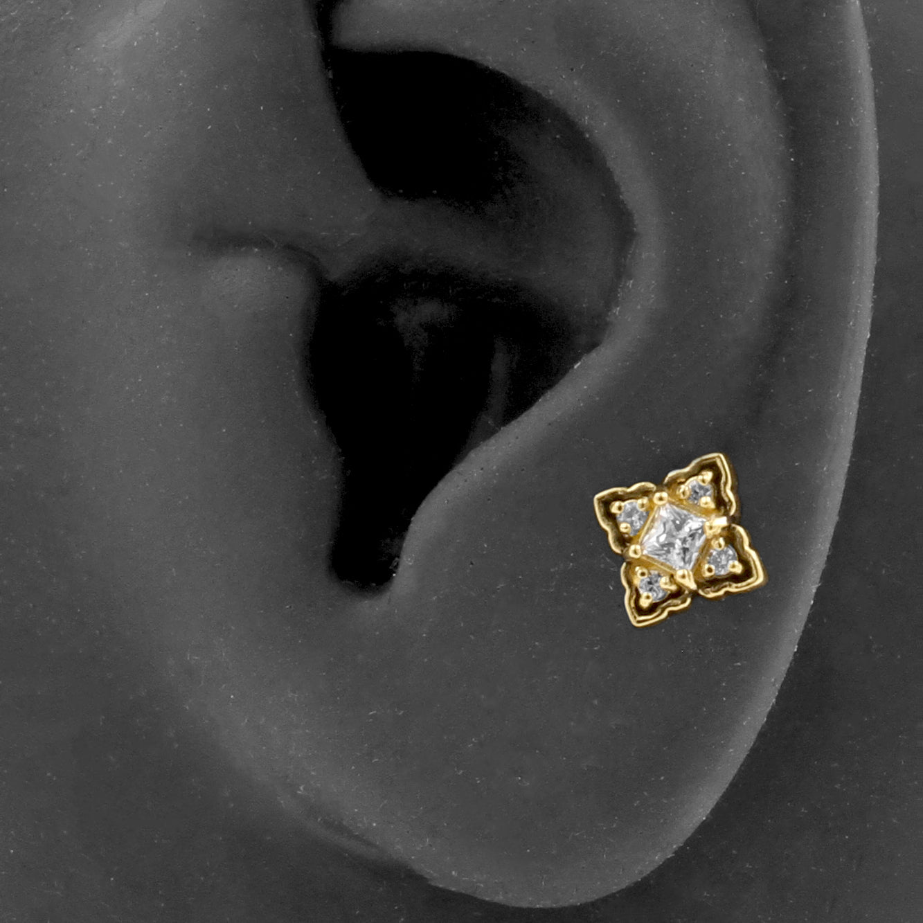 Are you going for subtle chique or a statement look? Whatever you're looking for, create your perfect look with ou 18 Karat gold jewelry! Our jewelry accessories instantly add a classy touch to every fashion outfit, and are perfect for creating the most exquisite curated ears. Our 18 karat gold jewelry is comfortable, trendy and made of the highest quality, genuine gold. Each threaded accessory features a beautiful design with high quality finish, set with zirconia. Suitable for 1,2 mm internally threaded piercing jewelry (extra info: the thread of the accessory itself measures 0,8 mm in thickness and is suitable for 1,2 mm All Over Piercings internally threaded piercing jewelry). You will receive the threaded accessory only upon ordering, without stud or post. Please note that due to the unique shape of the attachment, changing jewelry might be a bit more challenging. But practice makes perfect and it will all be more than worth it in the end, our gold piercing accessories will turn your piercings into real eyecatchers!