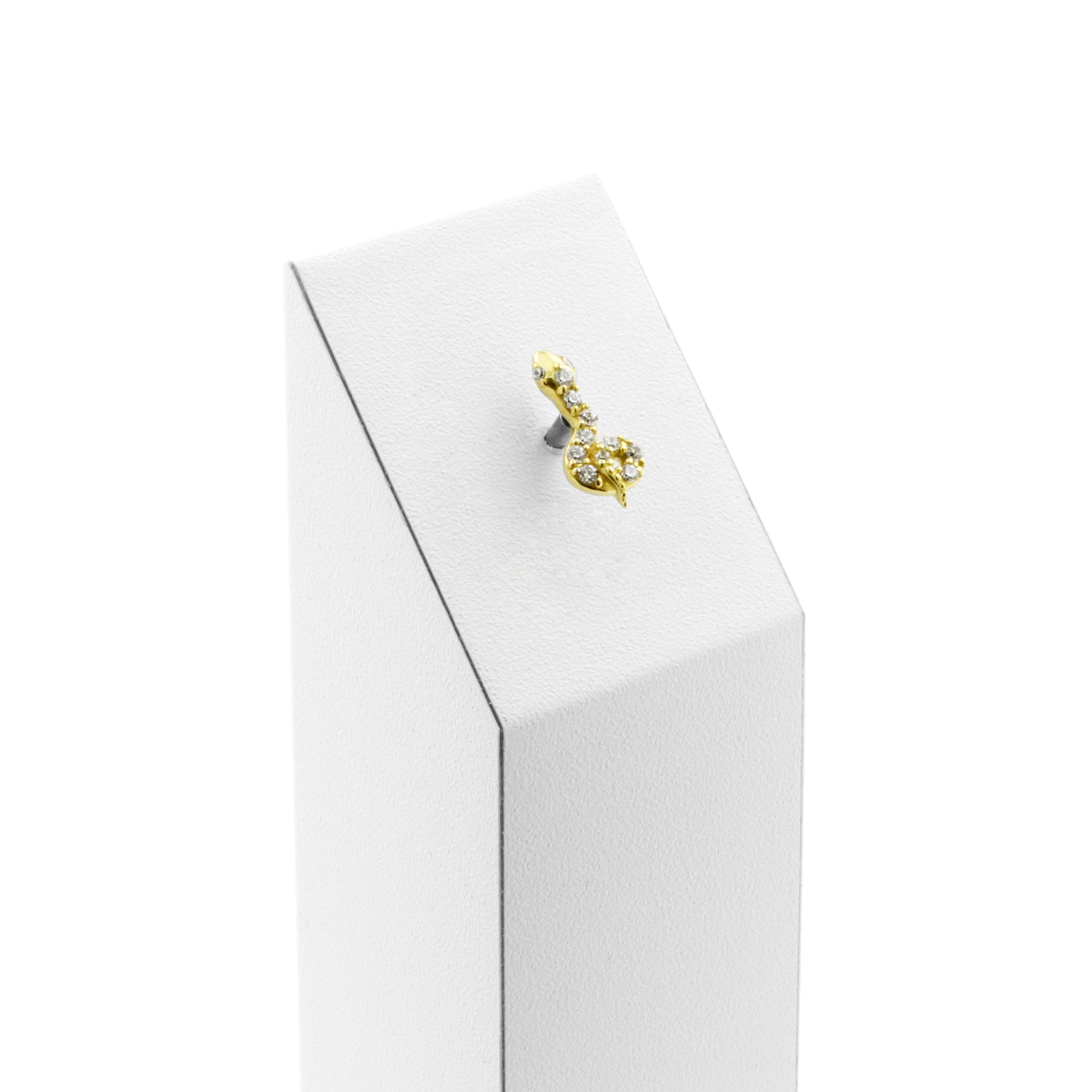 Are you going for subtle chique or a statement look? Whatever you're looking for, create your perfect look with ou 18 Karat gold jewelry! Our jewelry accessories instantly add a classy touch to every fashion outfit, and are perfect for creating the most exquisite curated ears. Our 18 karat gold jewelry is comfortable, trendy and made of the highest quality, genuine gold. Each threaded accessory features a beautiful design with high quality finish, set with premium zirconia. Suitable for 1,2 mm internally threaded piercing jewelry (extra info: the thread of the accessory itself measures 0,8 mm in thickness and is suitable for 1,2 mm All Over Piercings internally threaded piercing jewelry). You will receive the threaded accessory only upon ordering, without stud or post. Please note that due to the unique shape of the attachment, changing jewelry might be a bit more challenging. But practice makes perfect and it will all be more than worth it in the end, our gold piercing accessories will turn your piercings into real eyecatchers!