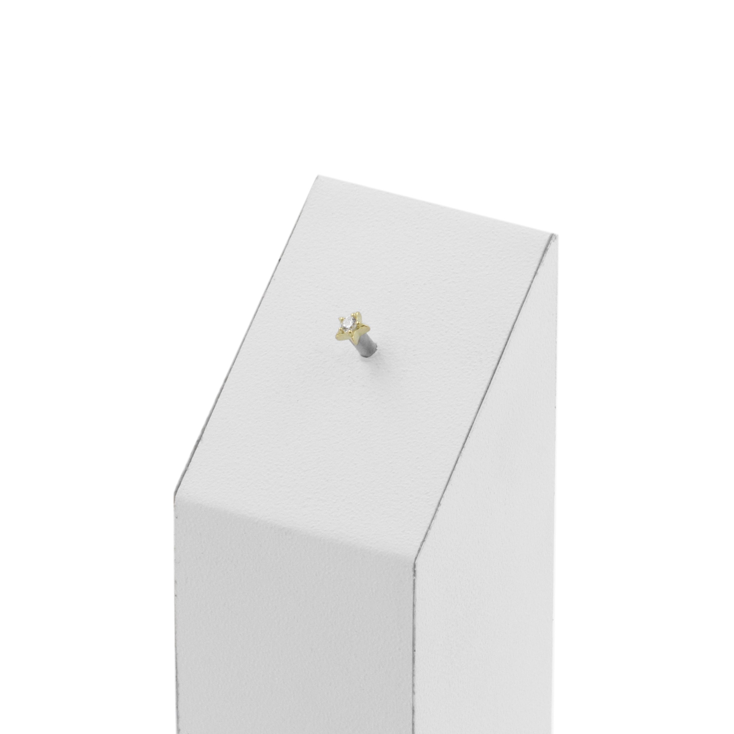 18 Karat Gold Zirconia Star instantly adds a stylish touch to your piercing. This Threadless Top is made of 18 Karat Gold. The threadless system allows you to easily combine this top with all our bars, which we call Threadless Base, for a perfect fit and ultimate comfort.