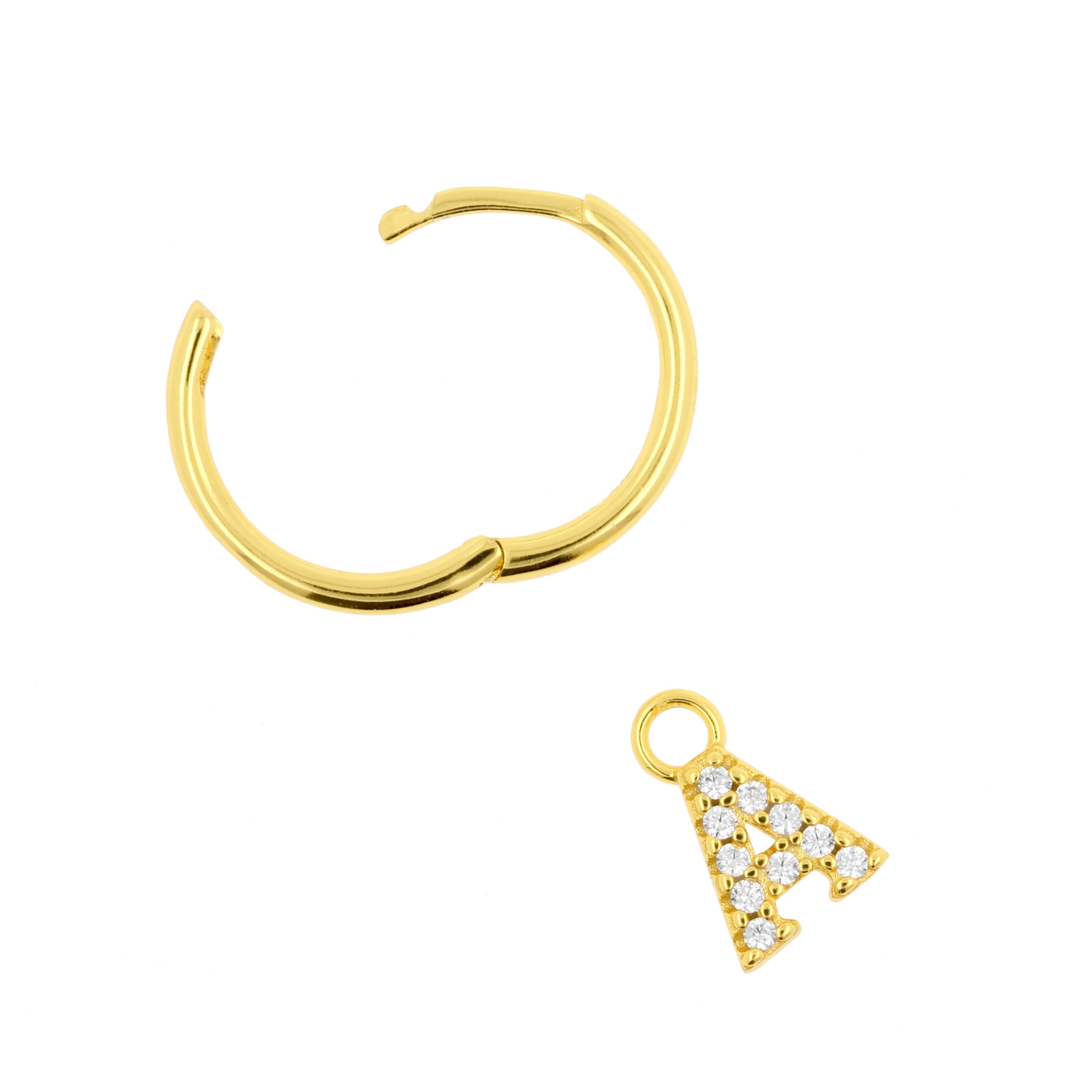 Complete your look with this amazing  Alphabet earring! Made of gold plated 925N Sterling Silver, fitted with lovely alphabet letter charm and perfect for regular size earring piercings. Easy to open and close, making this earring very comfortable to wear. Sold per piece, so you can create your very own jewelry and letter combinations. Trendy earrings that are a must have for your jewelry collection!
