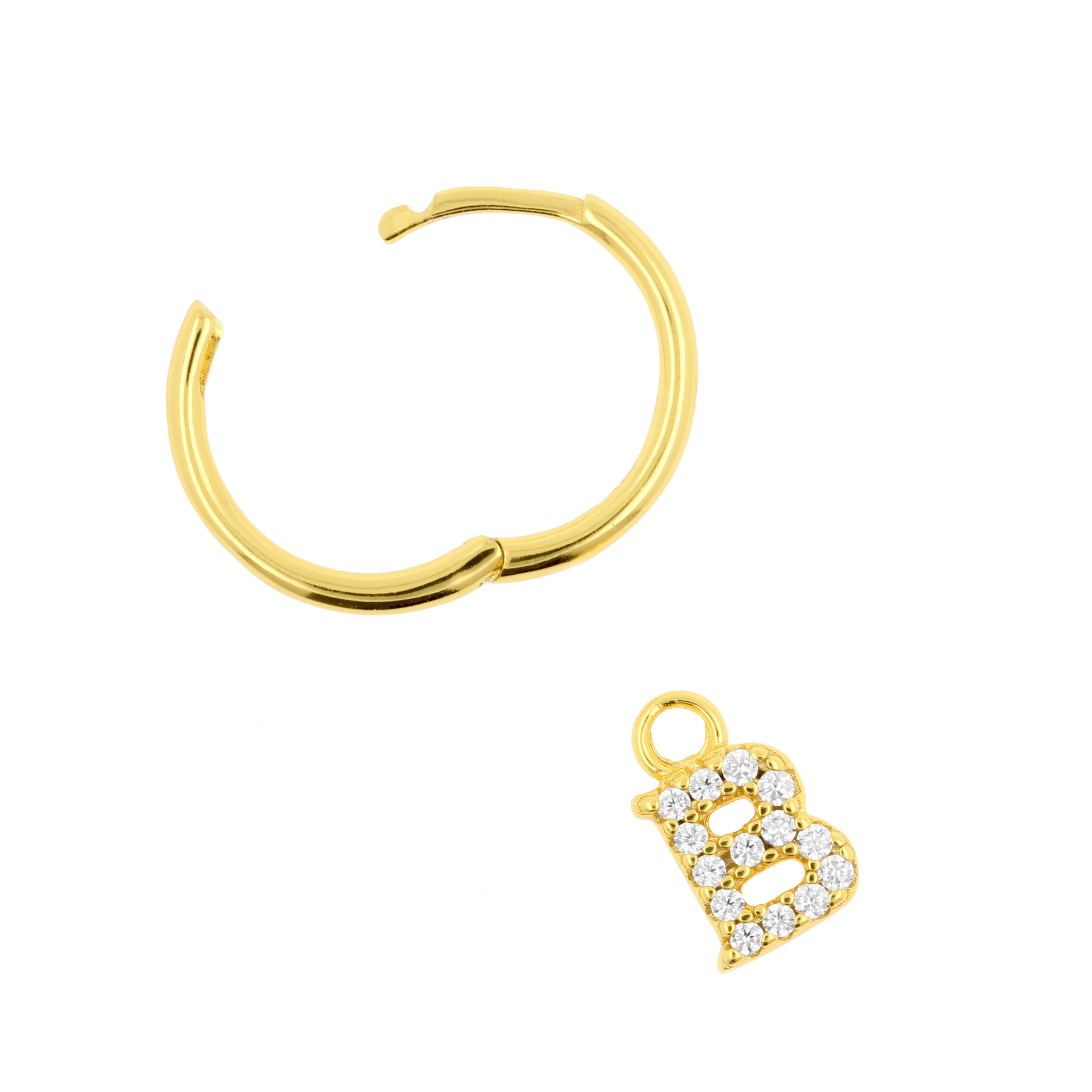 Complete your look with this amazing  Alphabet earring! Made of gold plated 925N Sterling Silver, fitted with lovely alphabet letter charm and perfect for regular size earring piercings. Easy to open and close, making this earring very comfortable to wear. Sold per piece, so you can create your very own jewelry and letter combinations. Trendy earrings that are a must have for your jewelry collection!