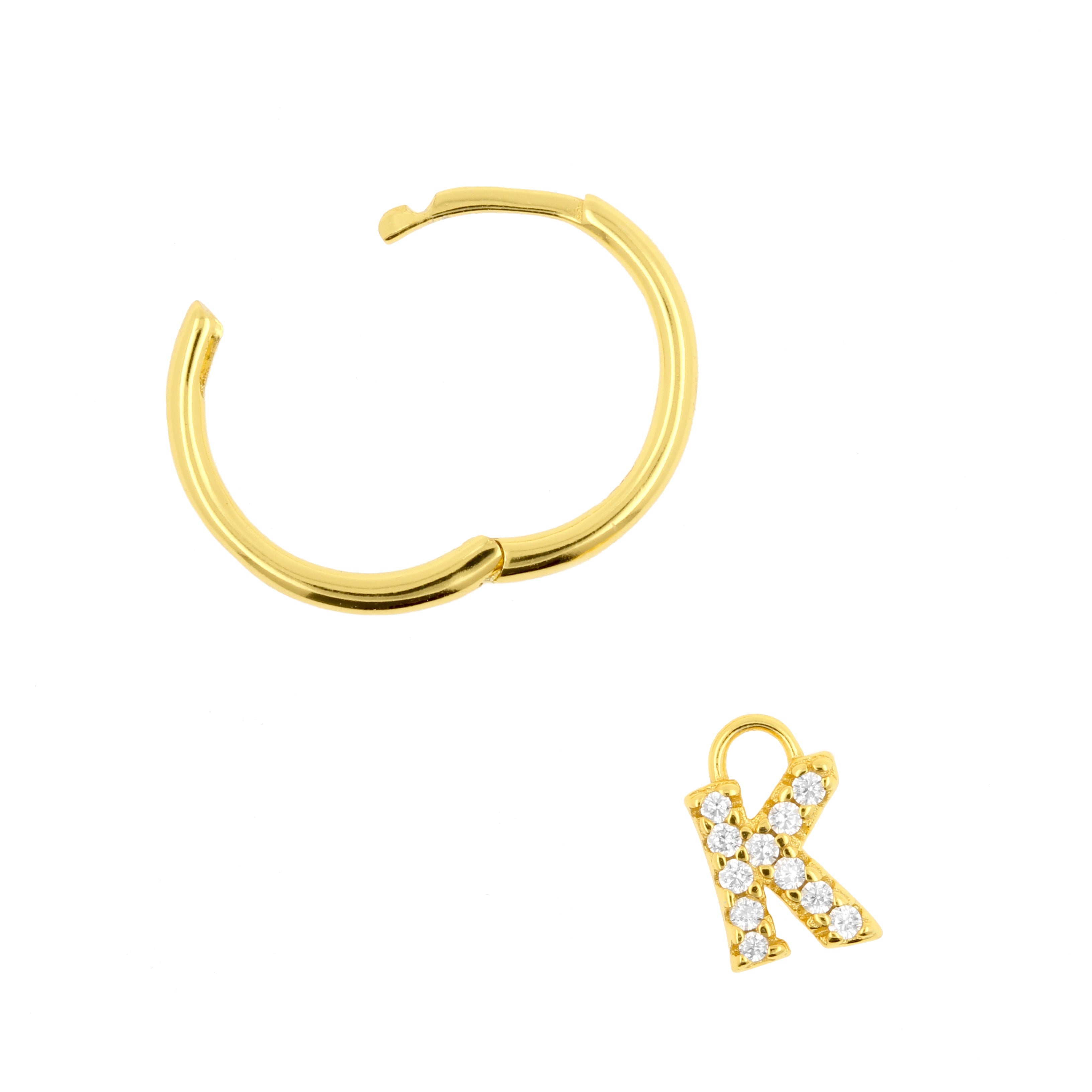 Complete your look with this amazing  Alphabet earring! Made of gold plated 925N Sterling Silver, fitted with lovely alphabet letter charm and perfect for regular size earring piercings. Easy to open and close, making this earring very comfortable to wear. Sold per piece, so you can create your very own jewelry and letter combinations. Trendy earrings that are a must have for your jewelry collection!
