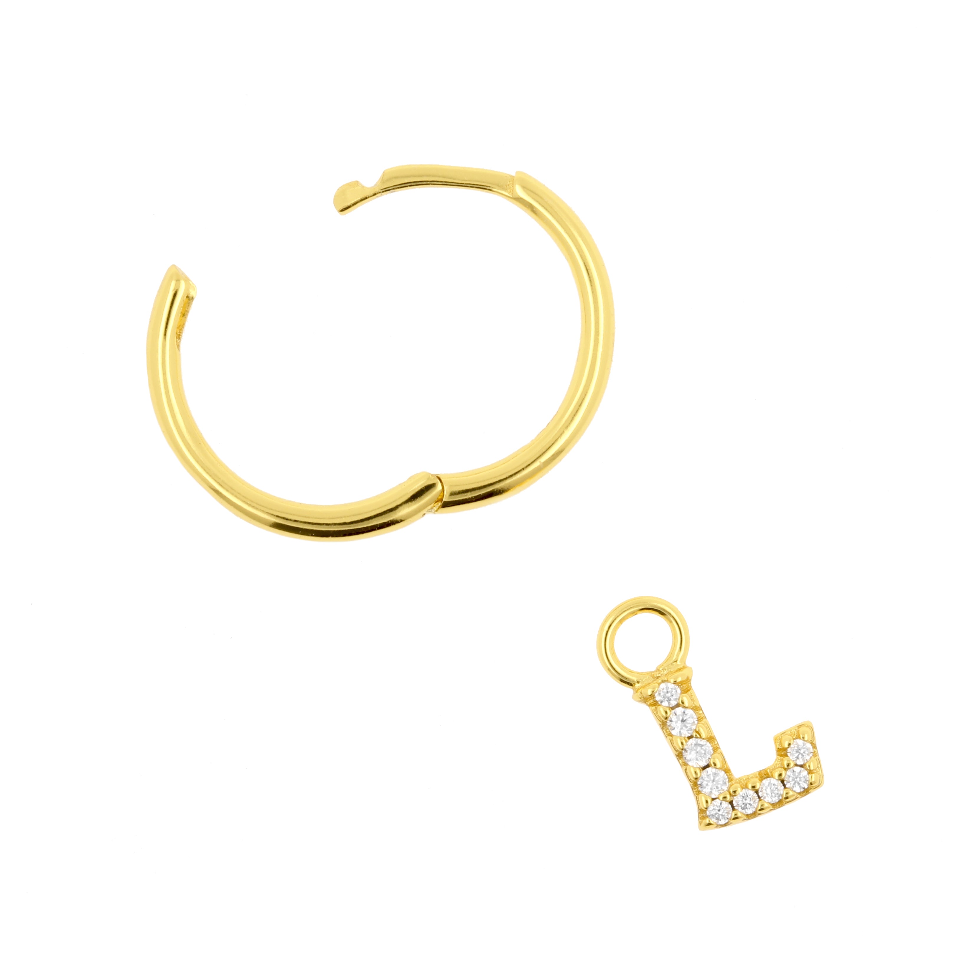 Complete your look with this amazing  Alphabet earring! Made of gold plated 925N Sterling Silver, fitted with lovely alphabet letter charm and perfect for regular size earring piercings. Easy to open and close, making this earring very comfortable to wear. Sold per piece, so you can create your very own jewelry and letter combinations. Trendy earrings that are a must have for your jewelry collection!