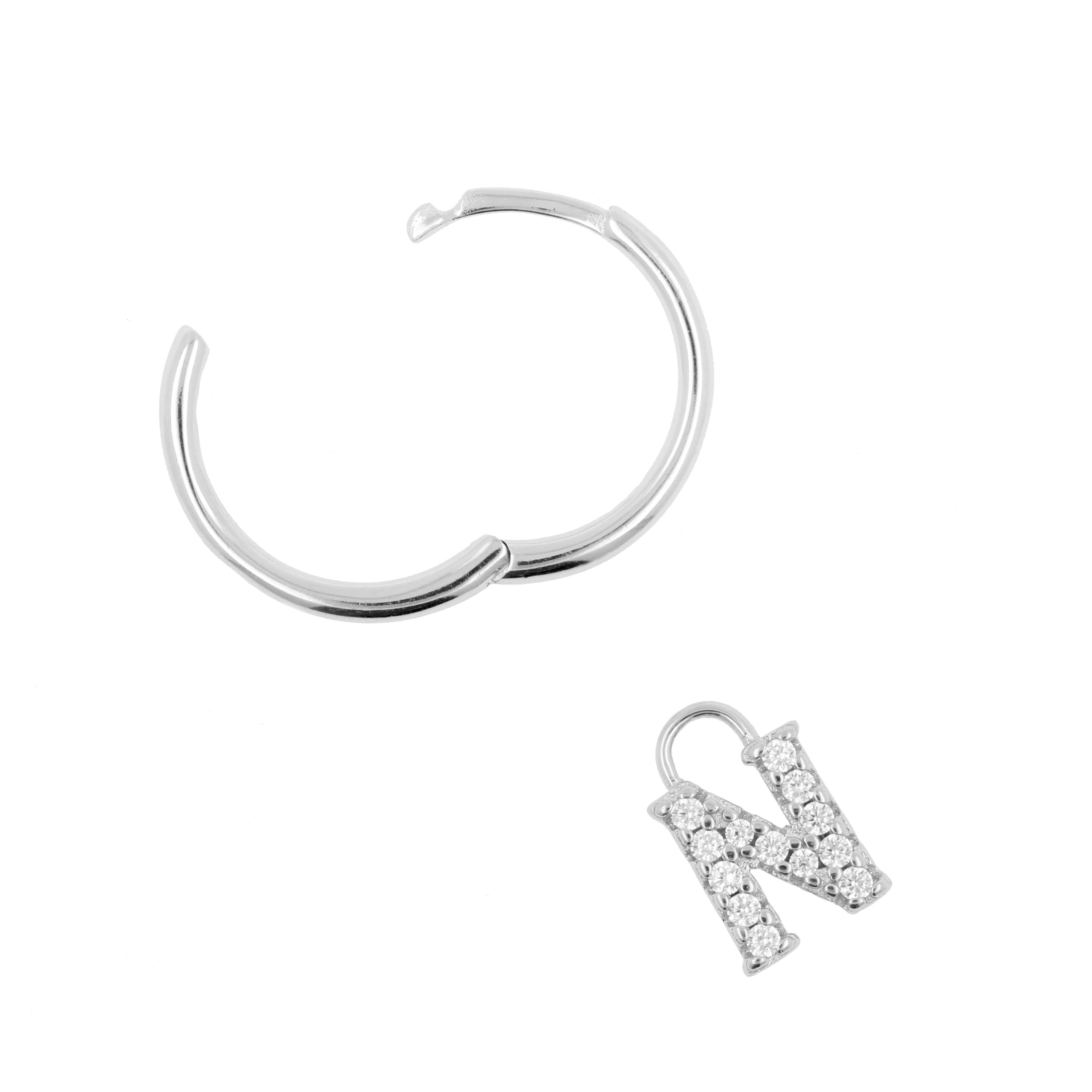 Complete your look with this amazing  Alphabet earring! Made of 925N Sterling Silver, fitted with lovely alphabet letter charm and perfect for regular size earring piercings. Easy to open and close, making this earring very comfortable to wear. Sold per piece, so you can create your very own jewelry and letter combinations. Trendy earrings that are a must have for your jewelry collection!