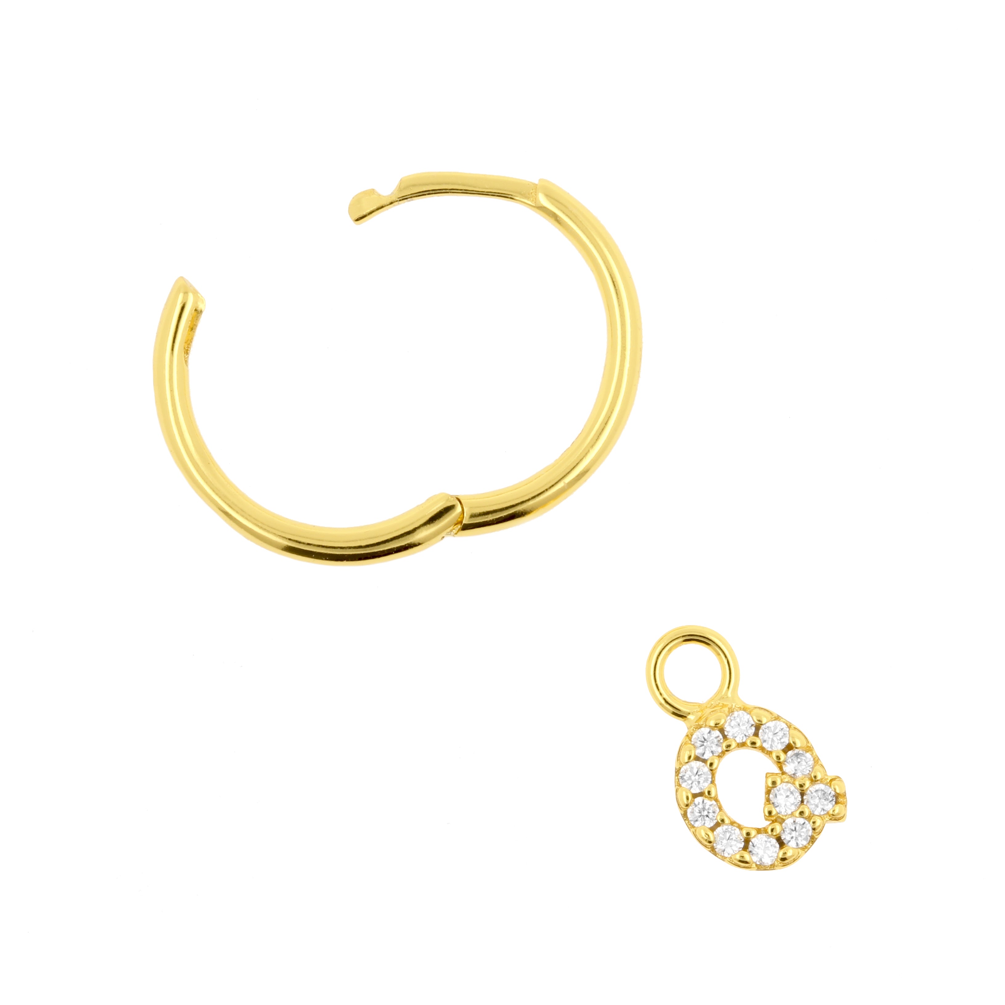 Complete your look with this amazing  Alphabet earring! Made of gold plated 925N Sterling Silver, fitted with lovely alphabet letter charm and perfect for regular size earring piercings. Easy to open and close, making this earring very comfortable to wear. Sold per piece, so you can create your very own jewelry and letter combinations. Trendy earrings that are a must have for your jewelry collection!