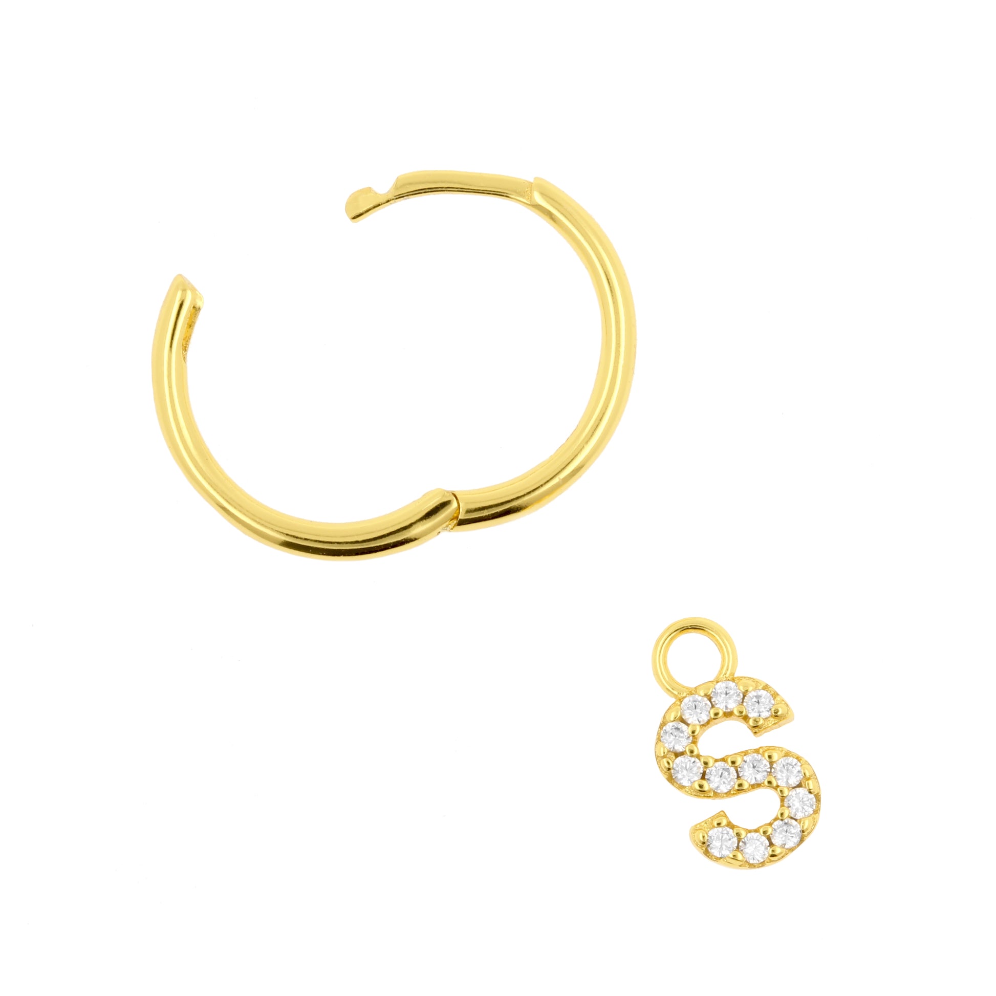 Complete your look with this amazing  Alphabet earring! Made of gold plated 925N Sterling Silver, fitted with lovely alphabet letter charm and perfect for regular size earring piercings. Easy to open and close, making this earring very comfortable to wear. Sold per piece, so you can create your very own jewelry and letter combinations. Trendy earrings that are a must have for your jewelry collection!