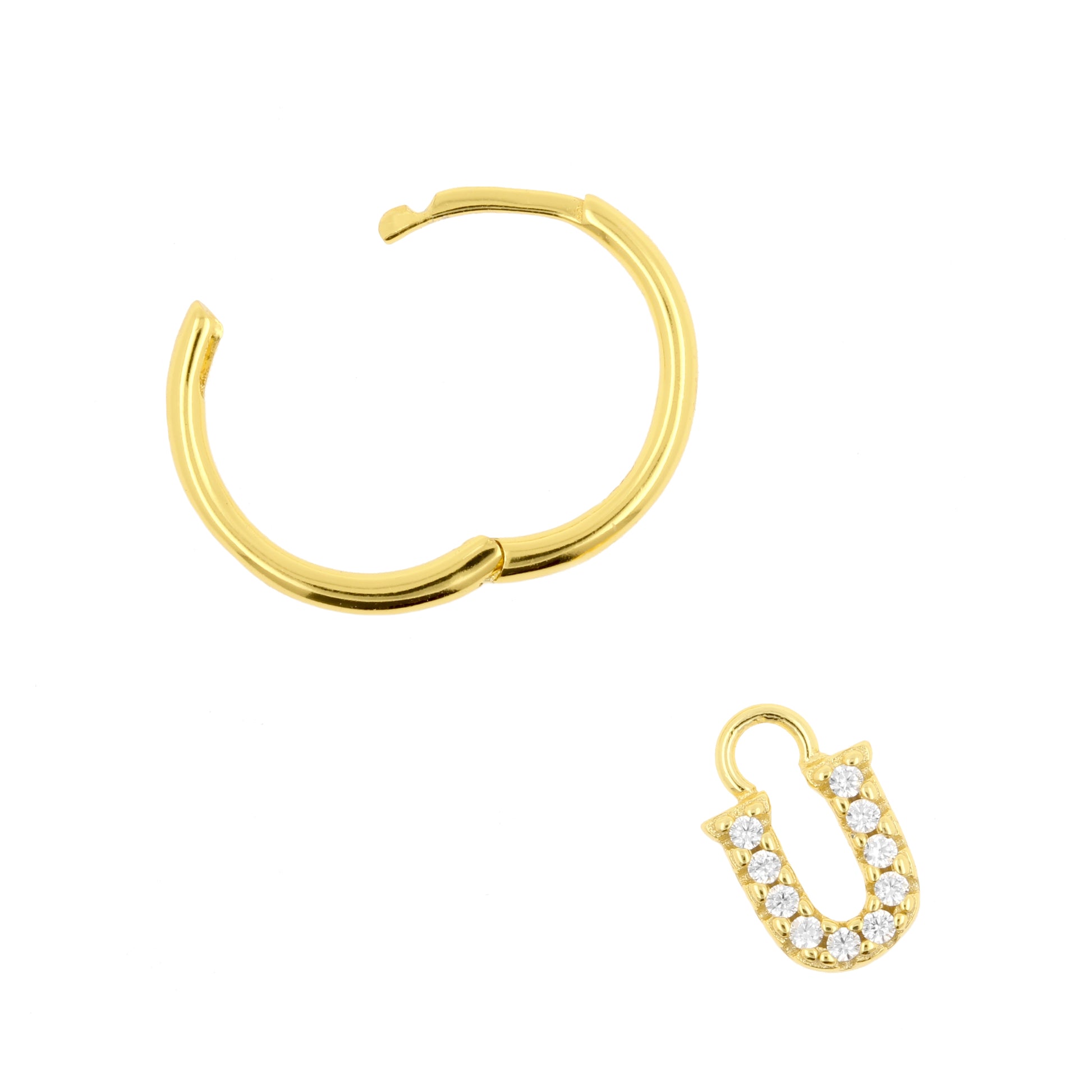 Complete your look with this amazing  Alphabet earring! Made of gold plated 925N Sterling Silver, fitted with lovely alphabet letter charm and perfect for regular size earring piercings. Easy to open and close, making this earring very comfortable to wear. Sold per piece, so you can create your very own jewelry and letter combinations. Trendy earrings that are a must have for your jewelry collection!