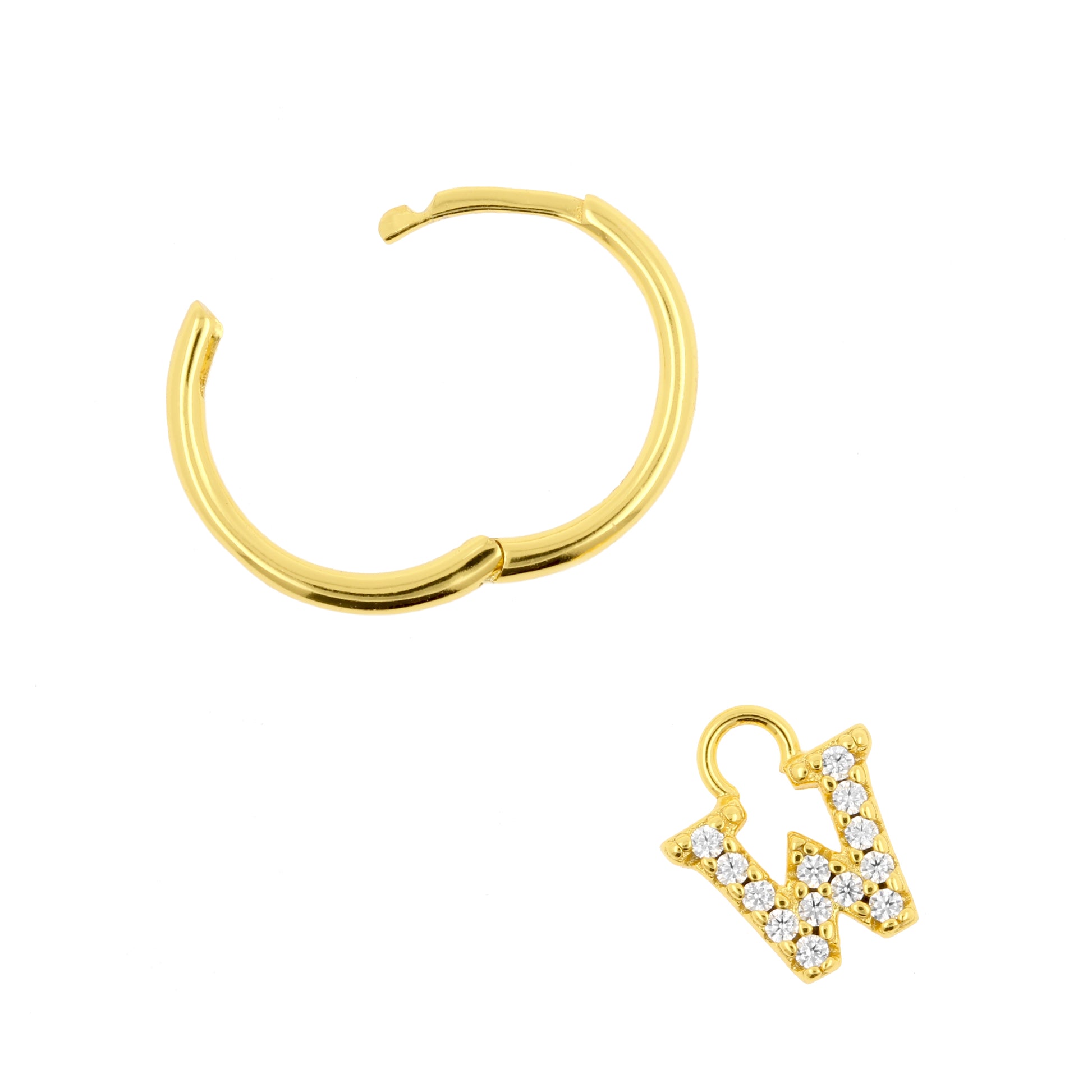 Complete your look with this amazing  Alphabet earring! Made of gold plated 925N Sterling Silver, fitted with lovely alphabet letter charm and perfect for regular size earring piercings. Easy to open and close, making this earring very comfortable to wear. Sold per piece, so you can create your very own jewelry and letter combinations. Trendy earrings that are a must have for your jewelry collection!