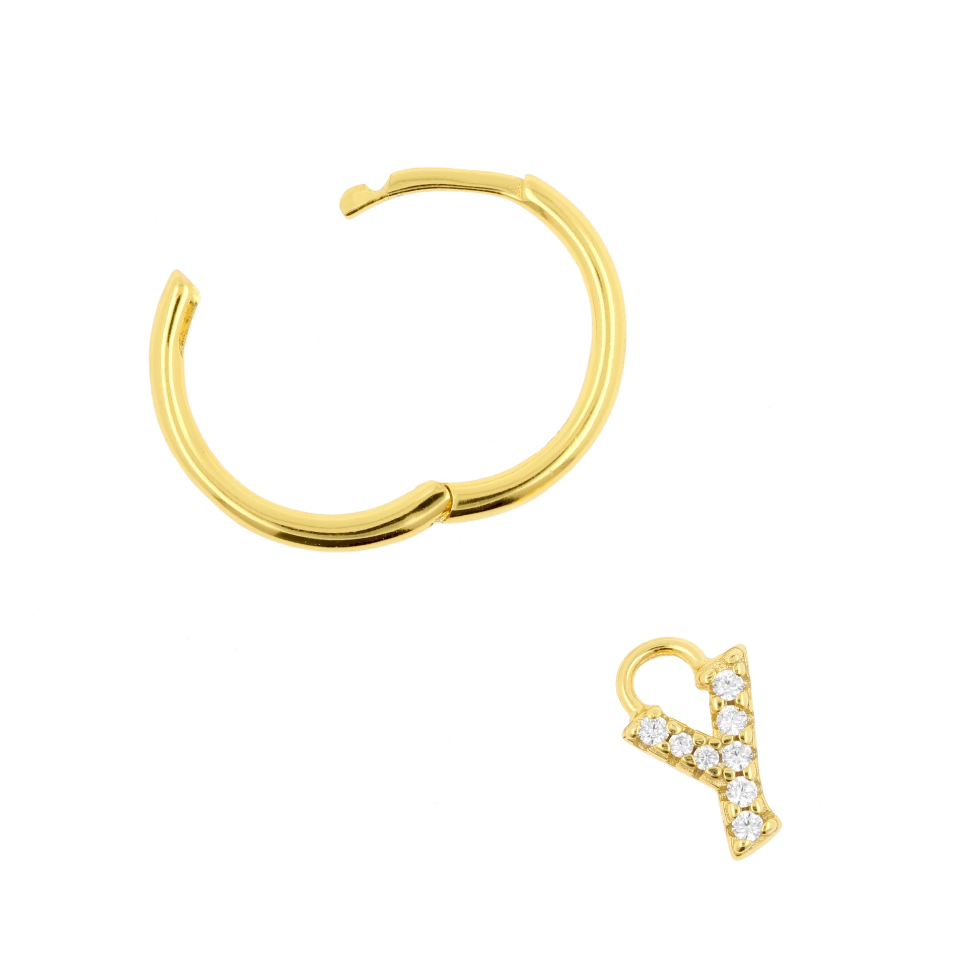 Complete your look with this amazing  Alphabet earring! Made of gold plated 925N Sterling Silver, fitted with lovely alphabet letter charm and perfect for regular size earring piercings. Easy to open and close, making this earring very comfortable to wear. Sold per piece, so you can create your very own jewelry and letter combinations. Trendy earrings that are a must have for your jewelry collection!