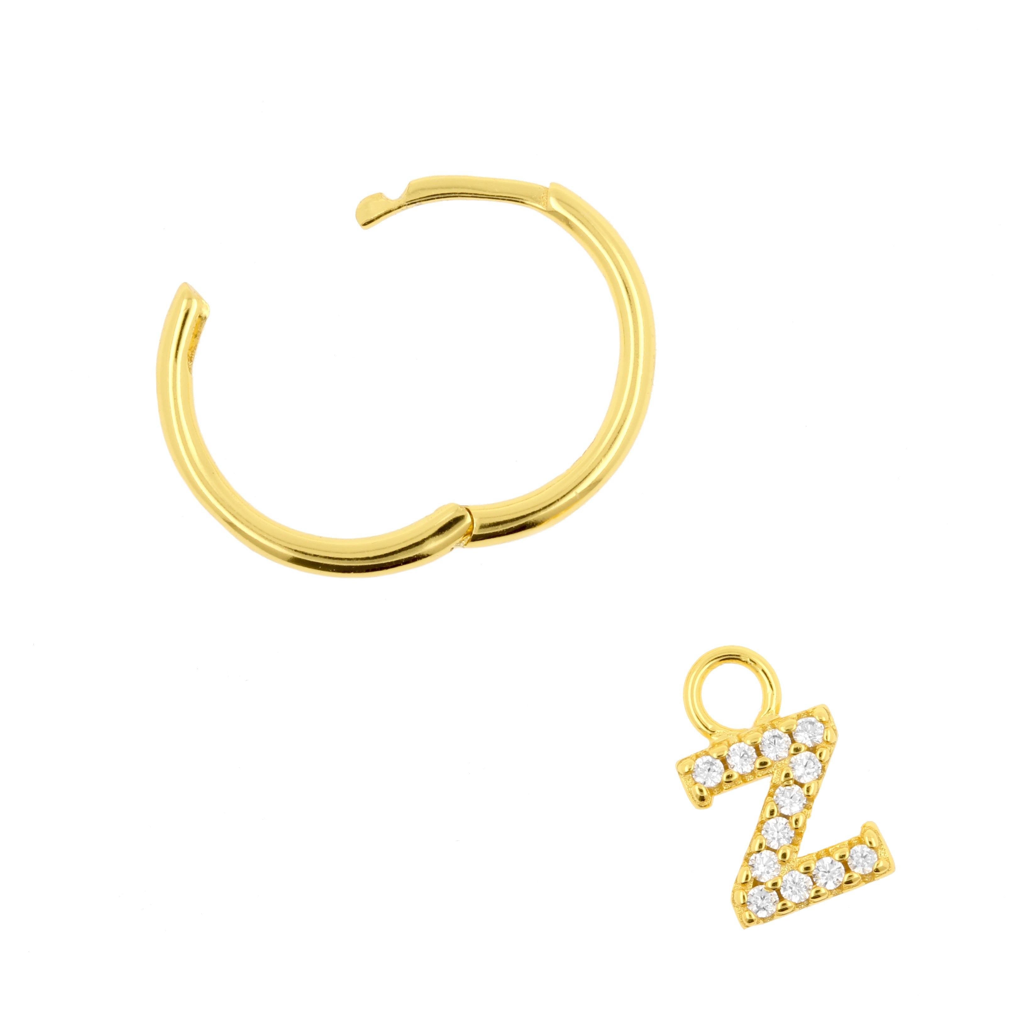 Complete your look with this amazing  Alphabet earring! Made of gold plated 925N Sterling Silver, fitted with lovely alphabet letter charm and perfect for regular size earring piercings. Easy to open and close, making this earring very comfortable to wear. Sold per piece, so you can create your very own jewelry and letter combinations. Trendy earrings that are a must have for your jewelry collection!