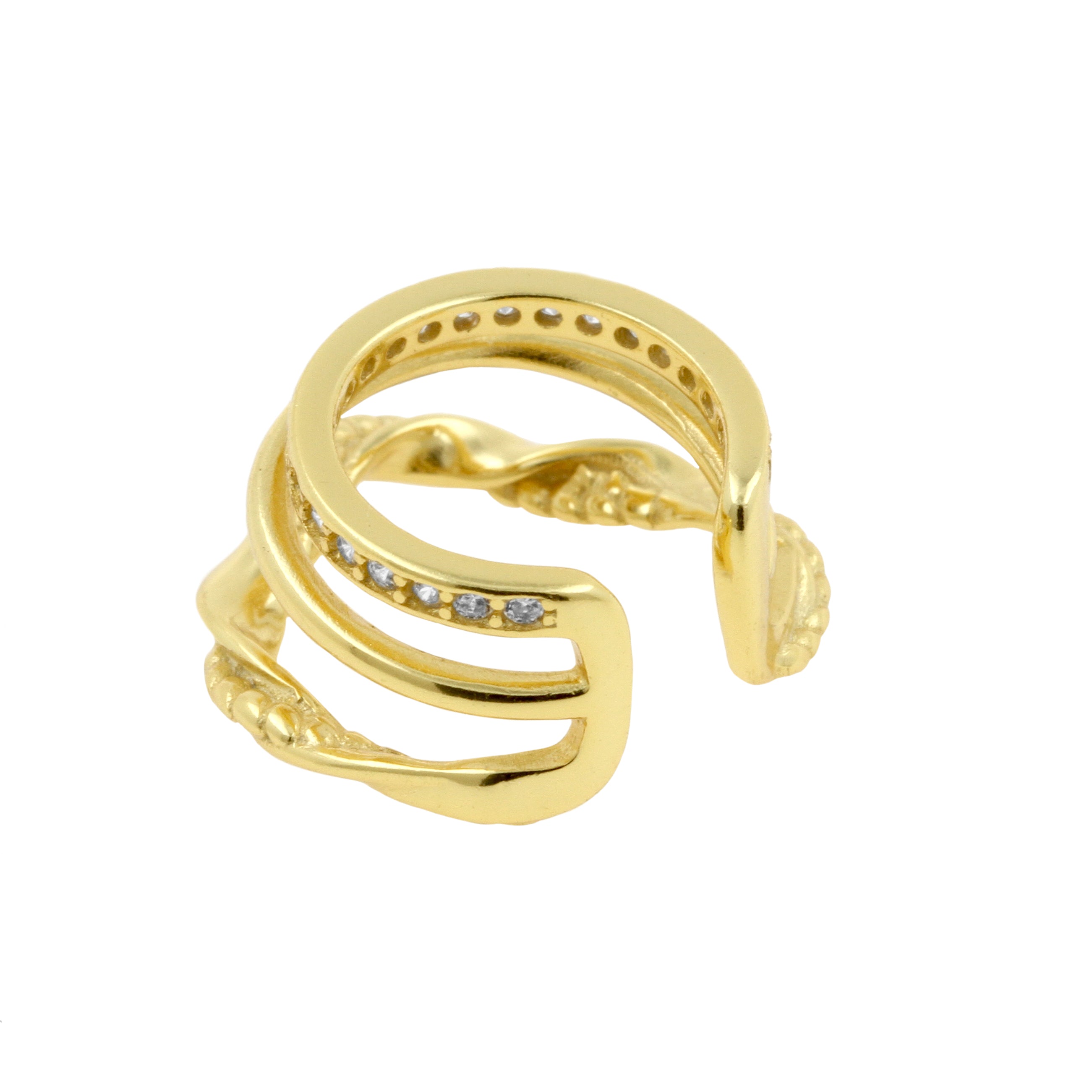 925 Silver Ear Cuff - Grunge Loop - Gold