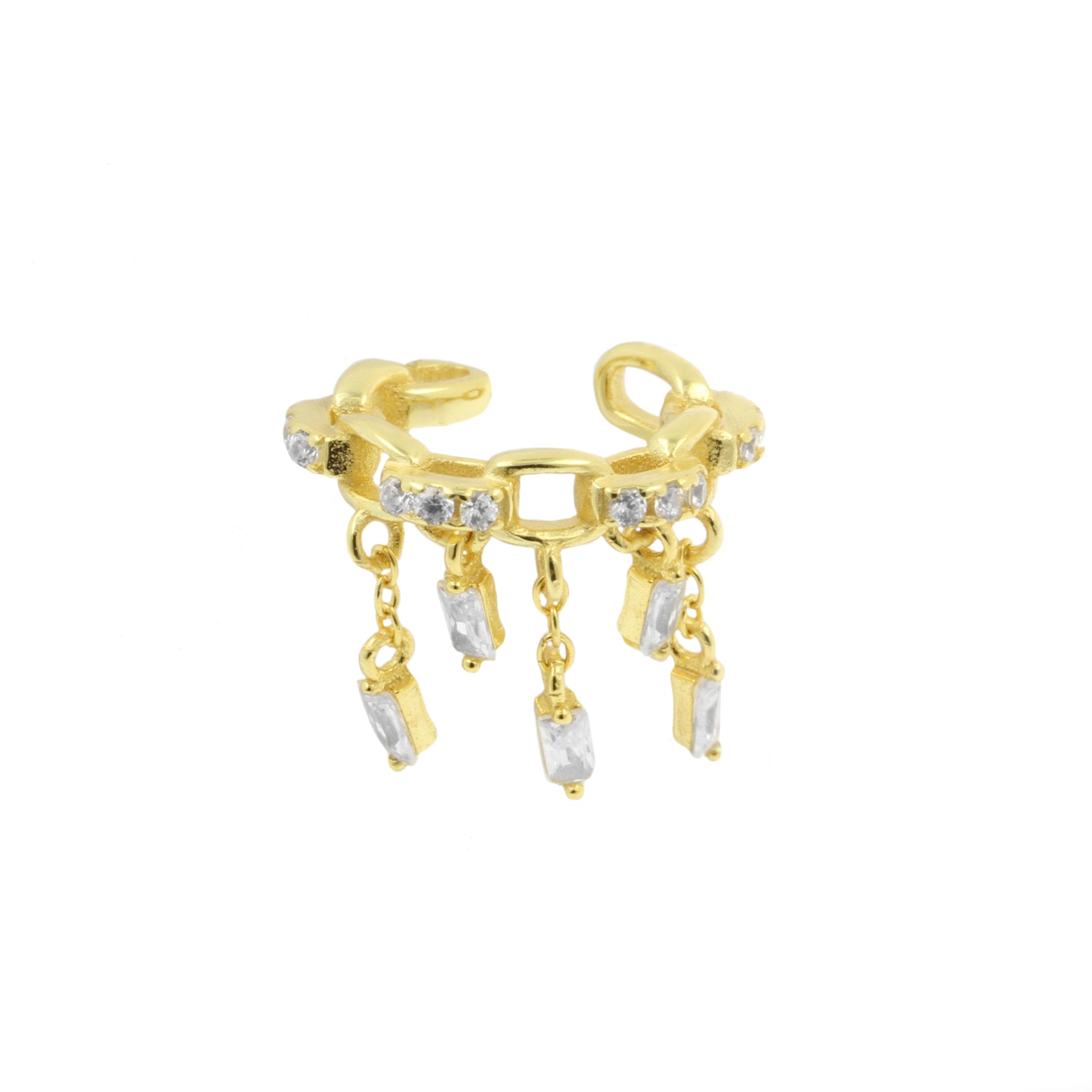 925 Silver Ear Cuff - Jewel Chain - Gold