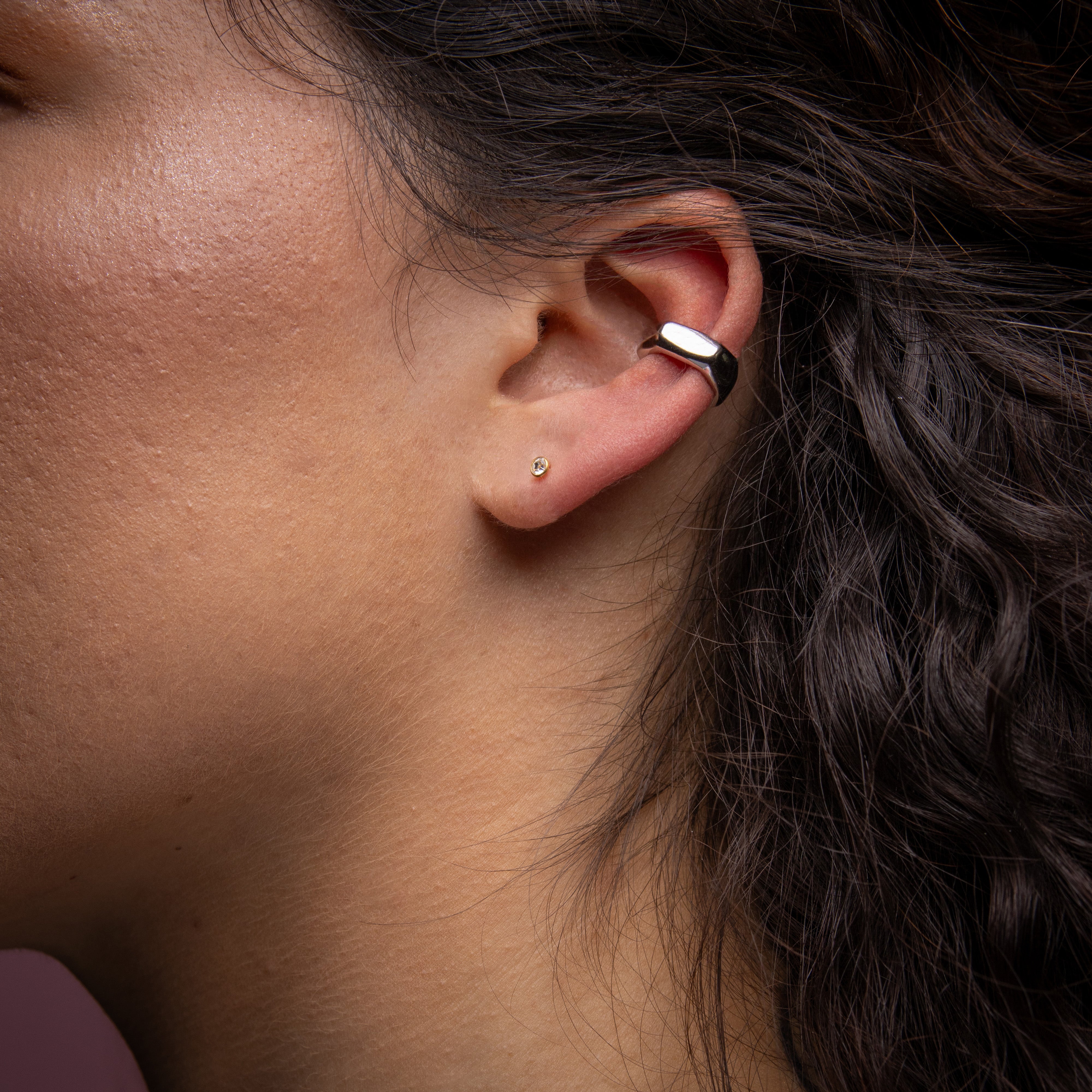 925 Silver Ear Cuff - Organic Hexagon - Silver