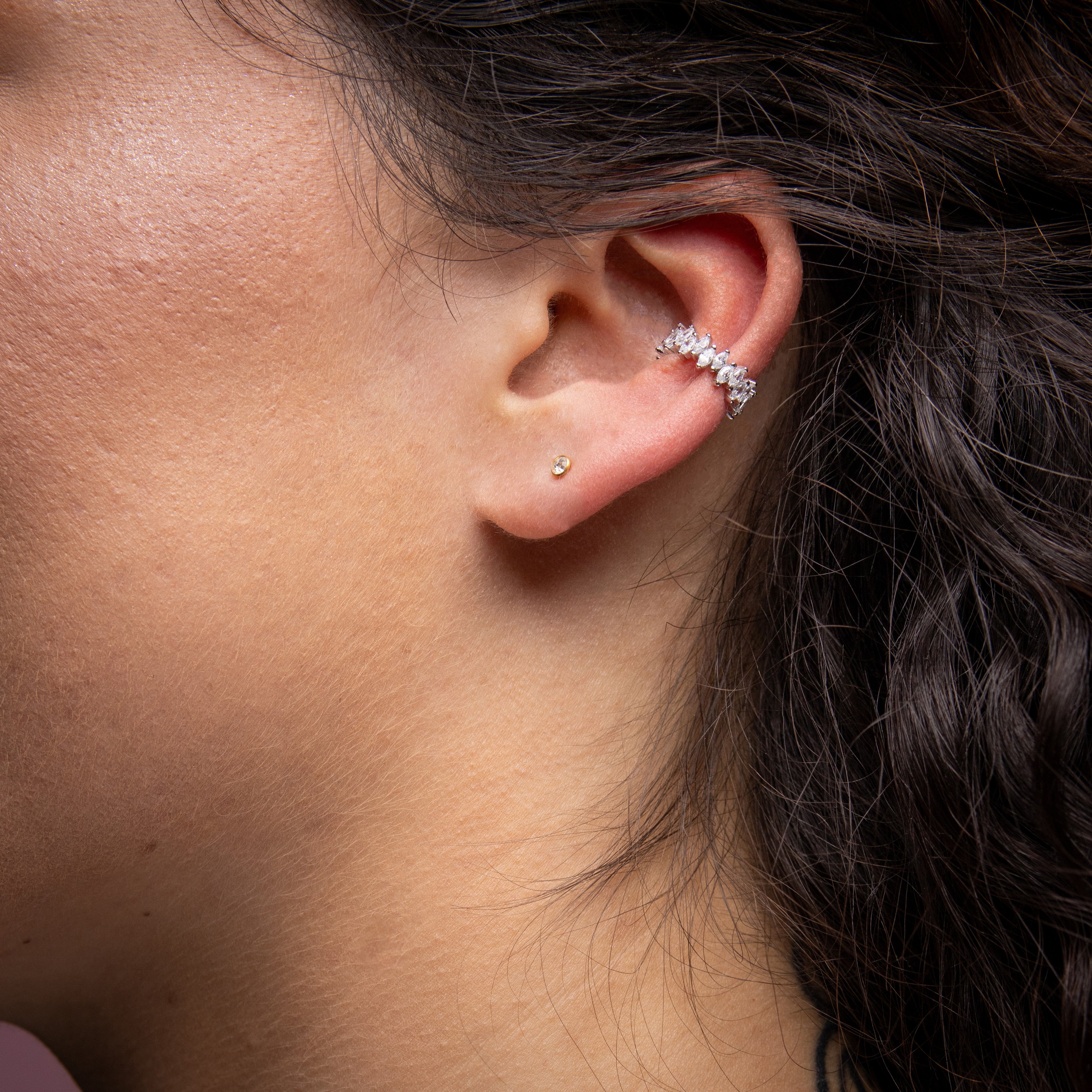 925 Silver Ear Cuff - Zirconia Rays - Silver